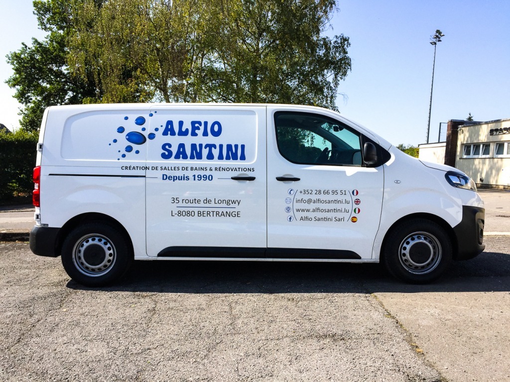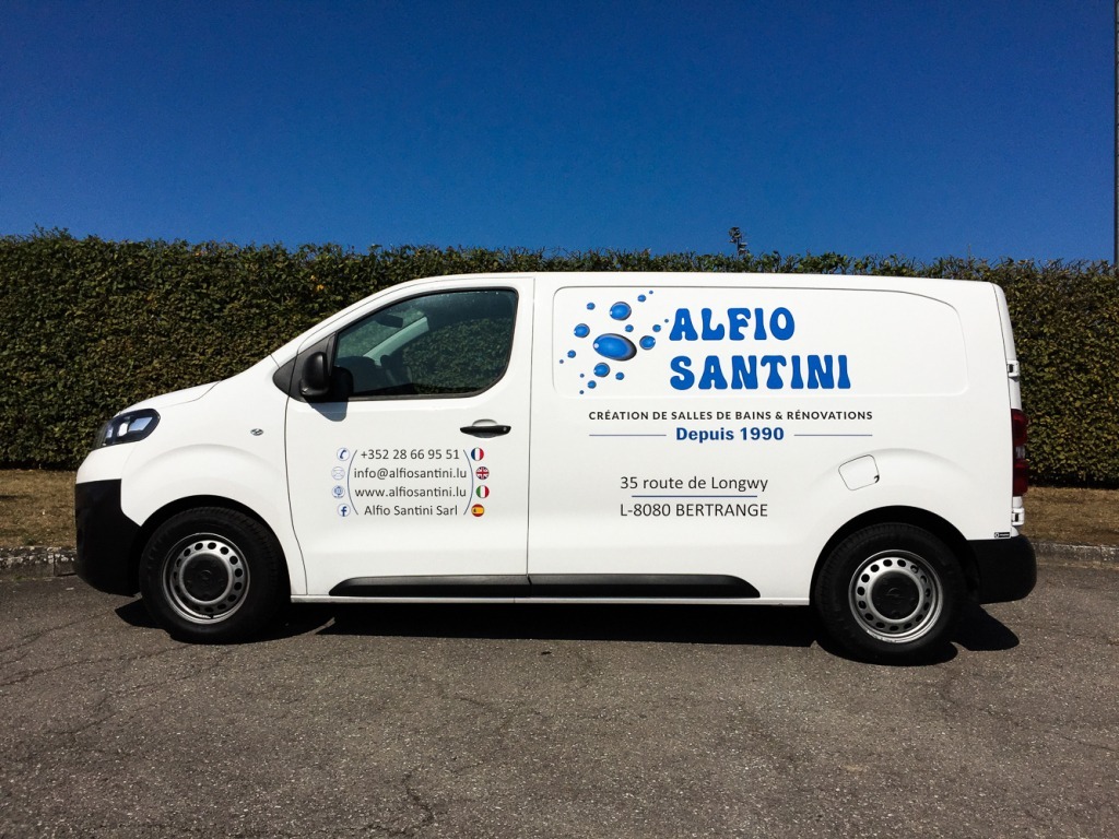 Alfio Santini désirait augmenter la visibilité de son entreprise à travers un lettrage de qualité sur son véhicule de société.