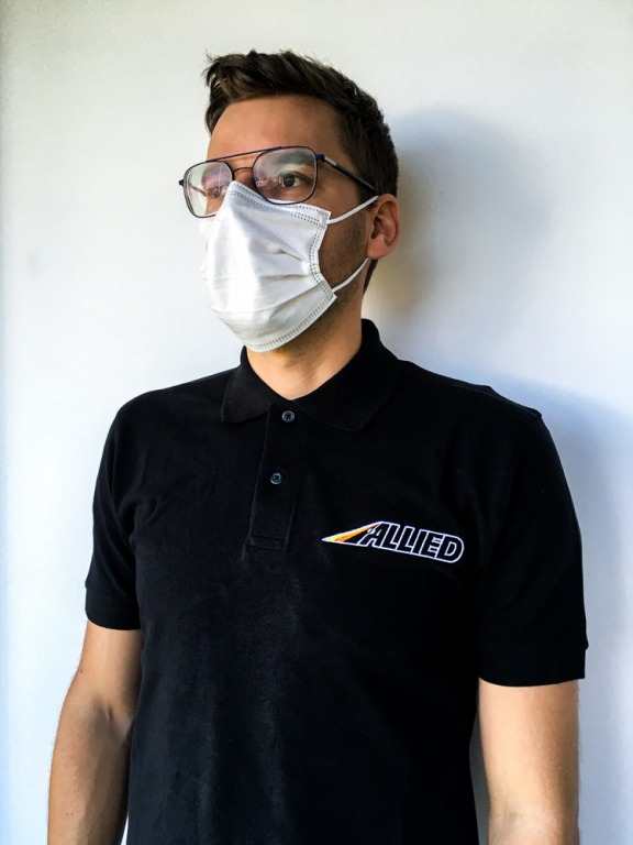 Après les camionnettes, camions et masques, notre client Allied Moving nous a confié l’impression de textiles personnalisés.