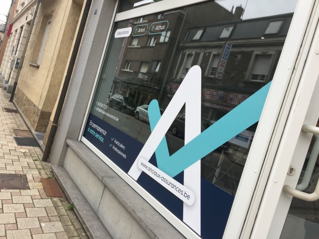 Après le développement de sa nouvelle identité, Anciaux Assurances a fait appel aux super-pouvoirs de Hello Deco. Objectif : lettrer son agence située à Athus (Belgique).