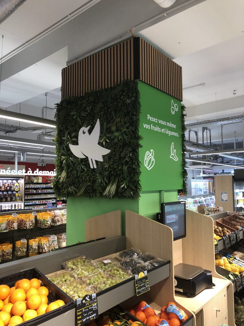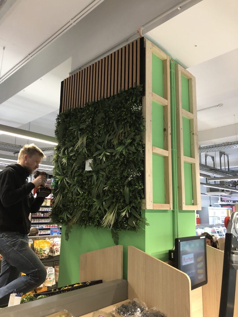 Dans le cadre de l’aménagement d’un espace pour l’enseigne AUCHAN, Hello Deco a conçu et installé un habillage complet mêlant esthétisme et naturalité.