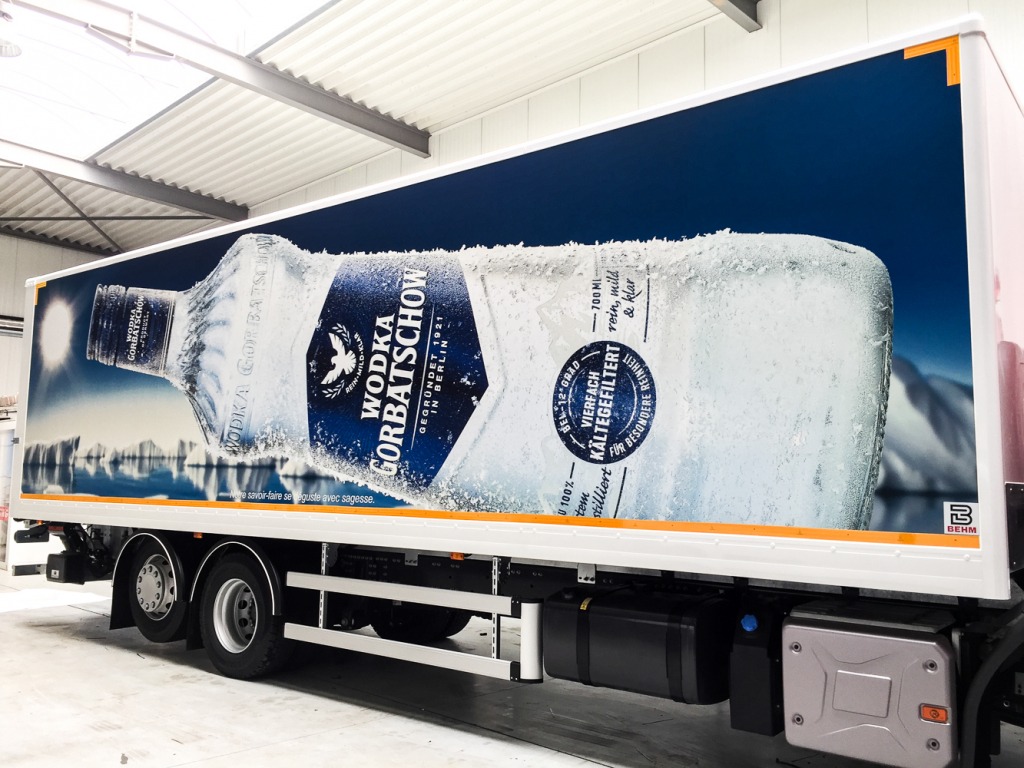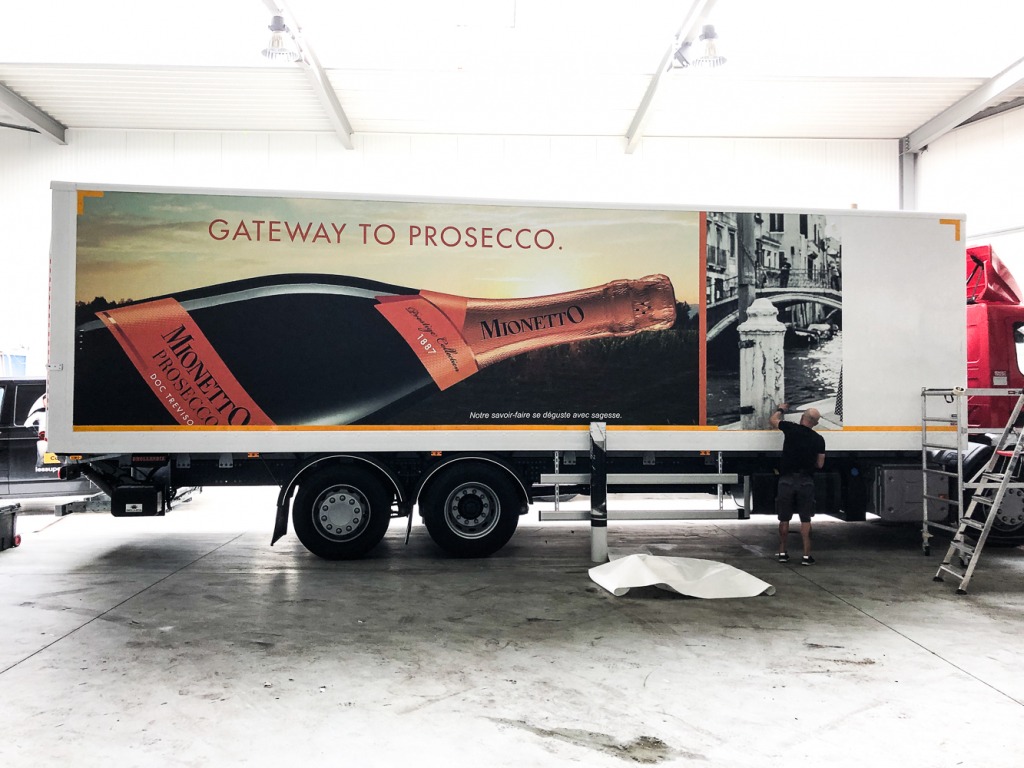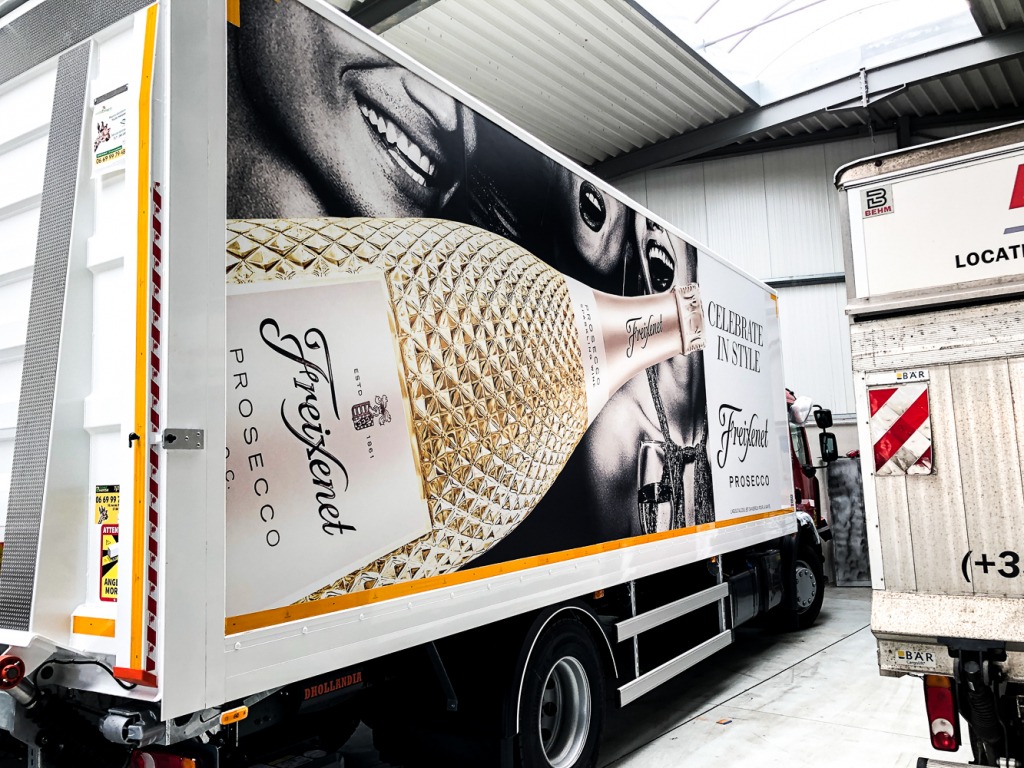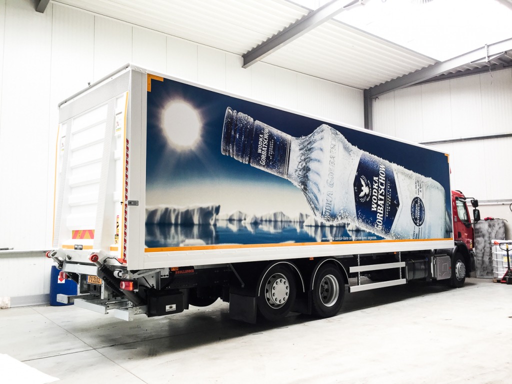 L’année dernière, notre partenaire nous avait confié le covering des flancs de 4 camions de livraison. C’est avec plaisir que nous avons une nouvelle fois relevé nos manches pour lettrer 4 nouveaux camions !