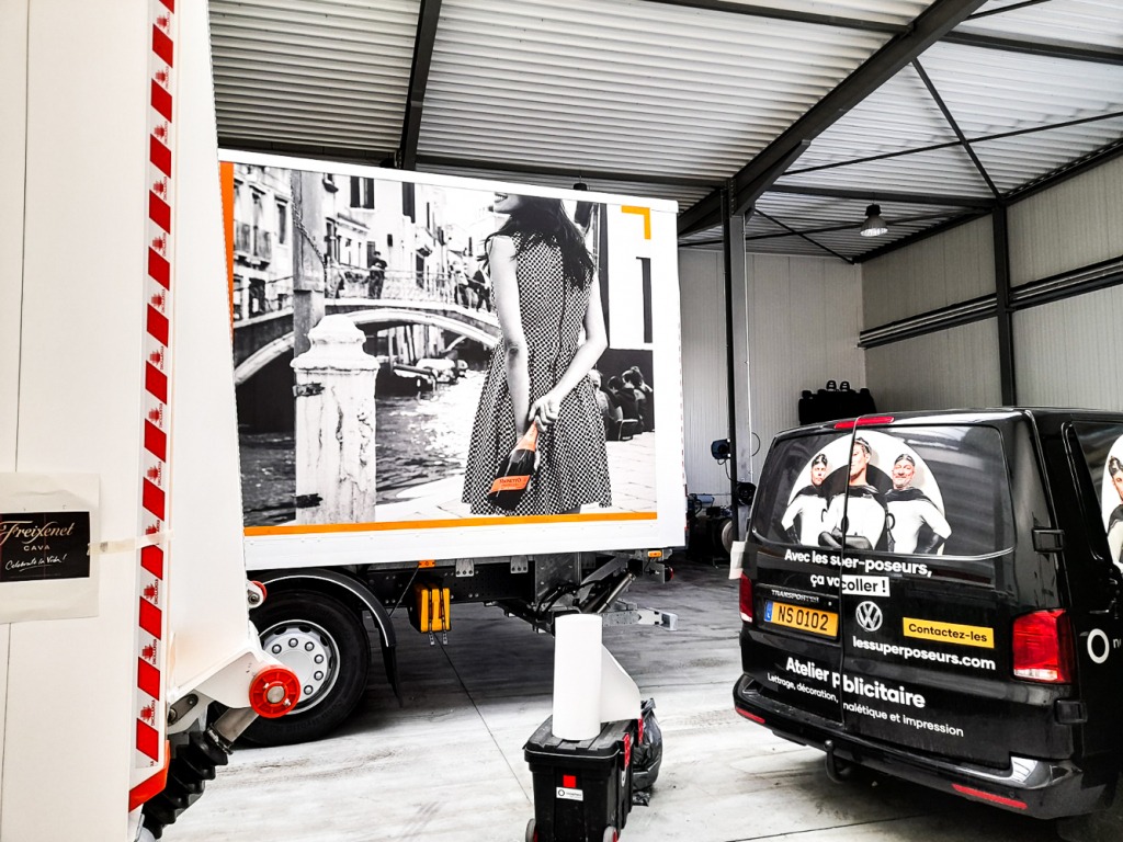 Nous pouvons lettrer n’importe quel type de véhicule. Un simple logo apposé, ou un wrapping entier : notre atelier peut lettrer un camion, une voiture, une flotte de véhicules de société, un camion ou même une grue. Confiez-nous votre projet, nous en discuterons ensemble !