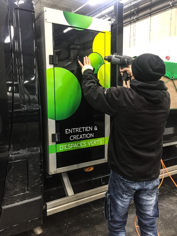 Notre équipe s’est rendue chez Groupe Car Avenue, profitant de l’installation d’un GPS pour lettrer l’ensemble du véhicule selon le projet graphique fourni par le client.