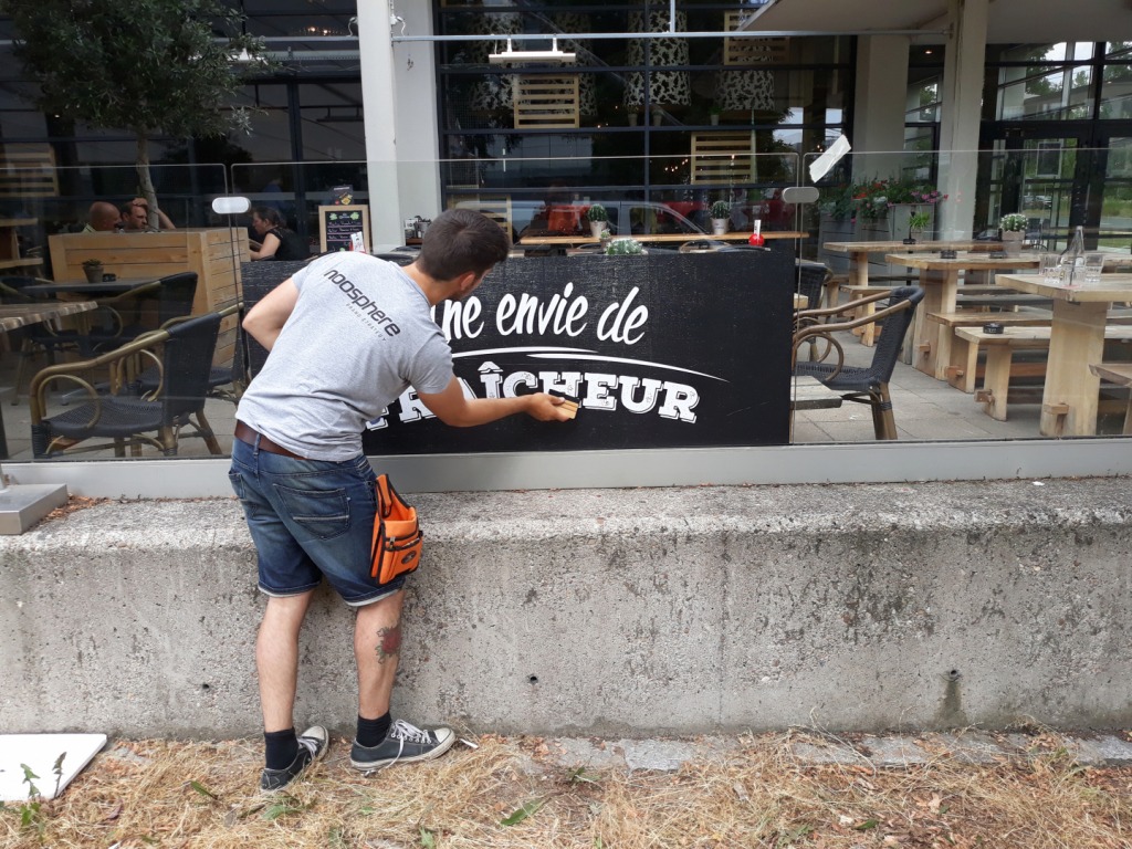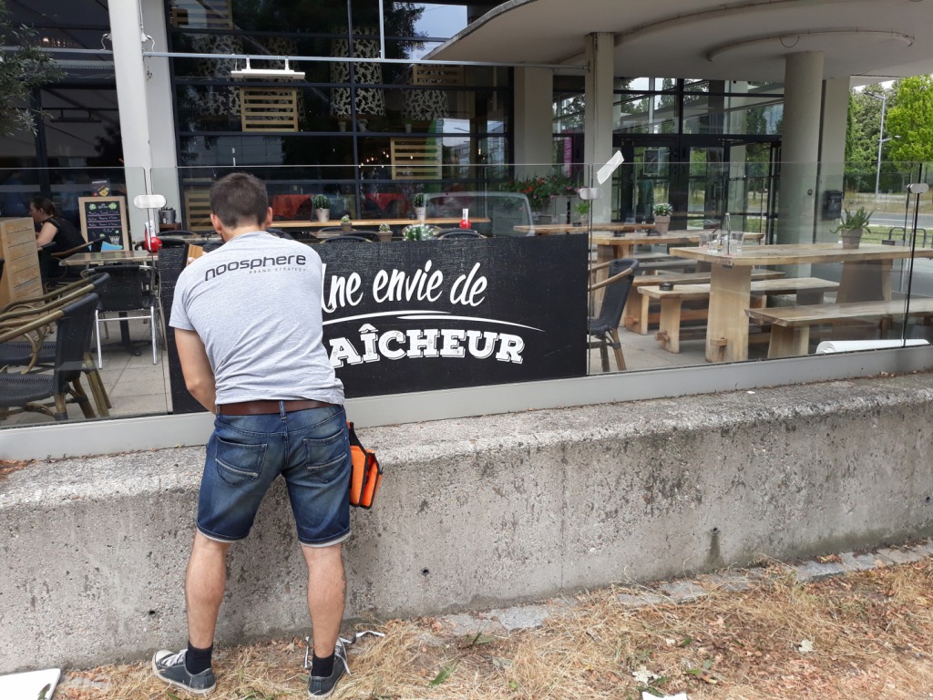 Nous avons produit et installé des stickers sur l’ensemble des brise-vent de la terrasse, afin d’accroitre l’univers du restaurant pour une personnalisation au top !
