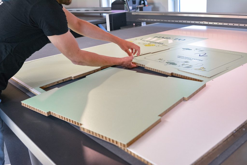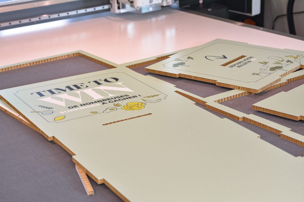 Après impression à plat et découpe numérique, il ne restait plus qu’à assembler les pièces ensemble.