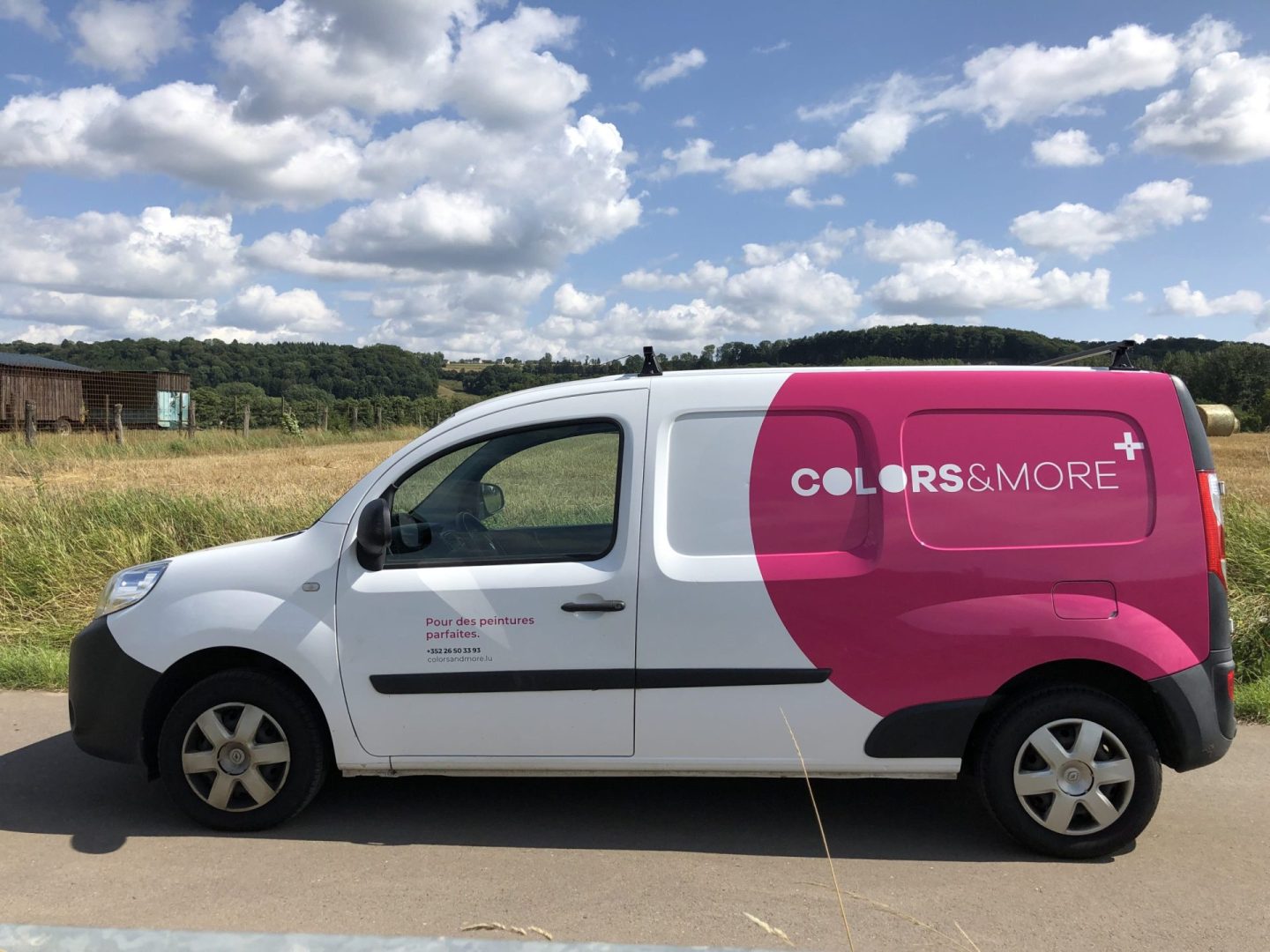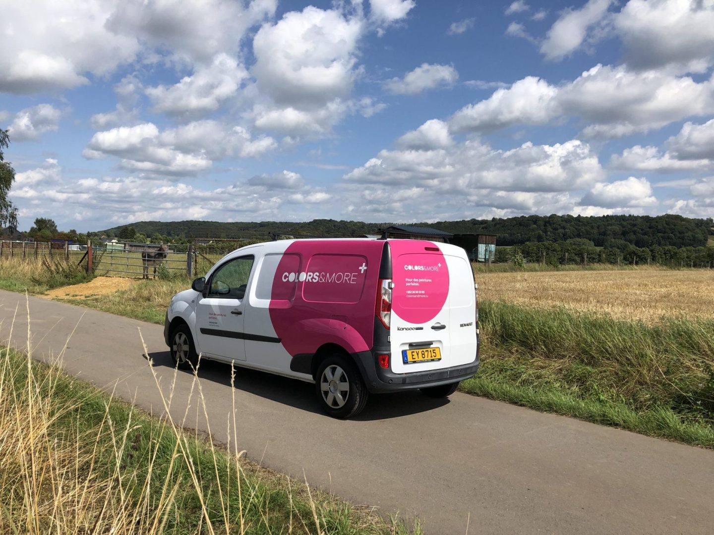Un lettrage sur véhicule avec une belle touche de pep’s pour la société Colors & More ! Le covering partiel ou total, une solution efficace pour gagner en visibilité!