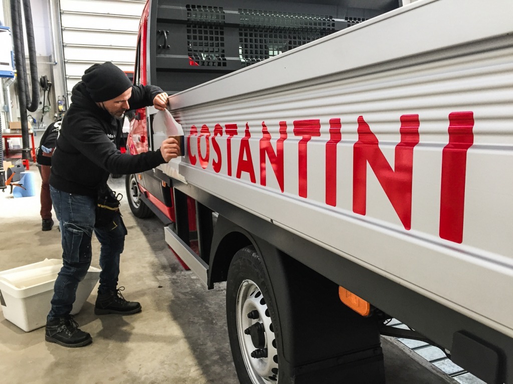 Notre collaboration avec Costantini continue de plus belle ! Après le lettrage de 120 véhicules, nous avons lettré 25 nouveaux véhicules utilitaires.