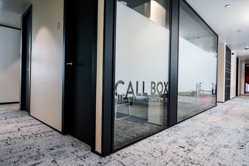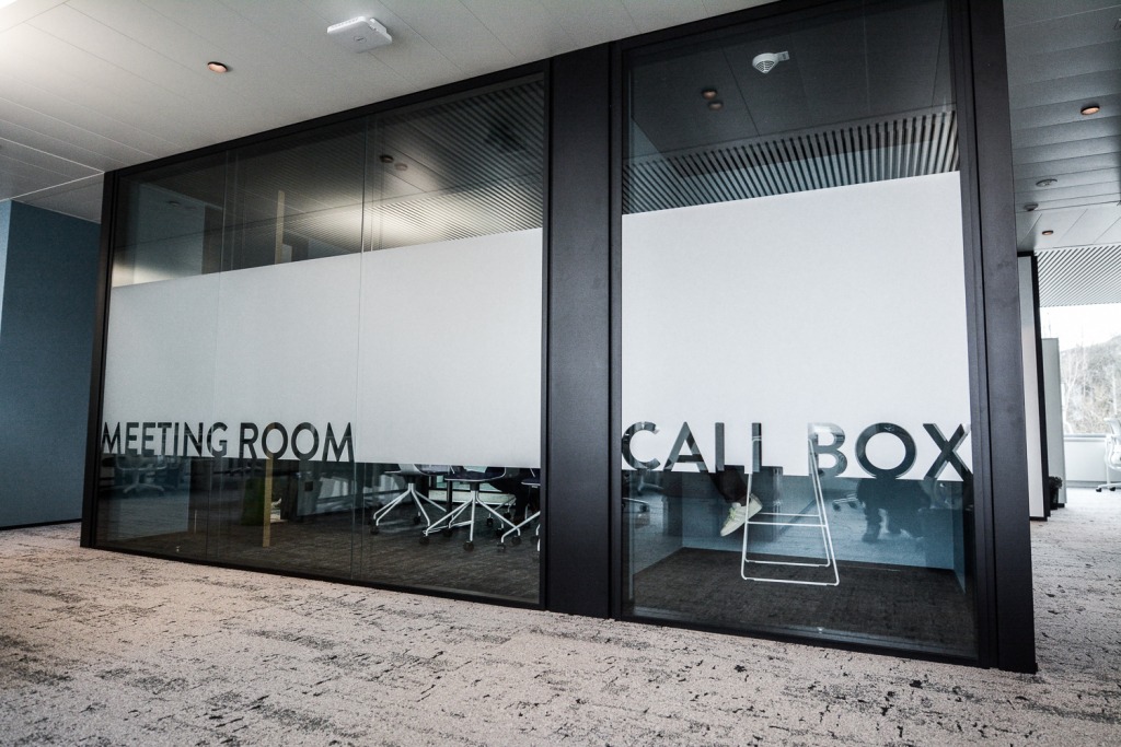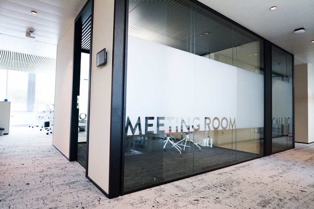 Nous nous sommes rendus avec toute l’équipe sur place, afin de faire au plus vite pour que notre client soit bien installé. Nous avons produit et posé des mètres et des mètres de film sablé pour privatiser les salles et les bureaux, mais aussi des stickers picto pour guider les employés, des panneaux en plexiglass et des stickers et fixations avec entretoises murales.
