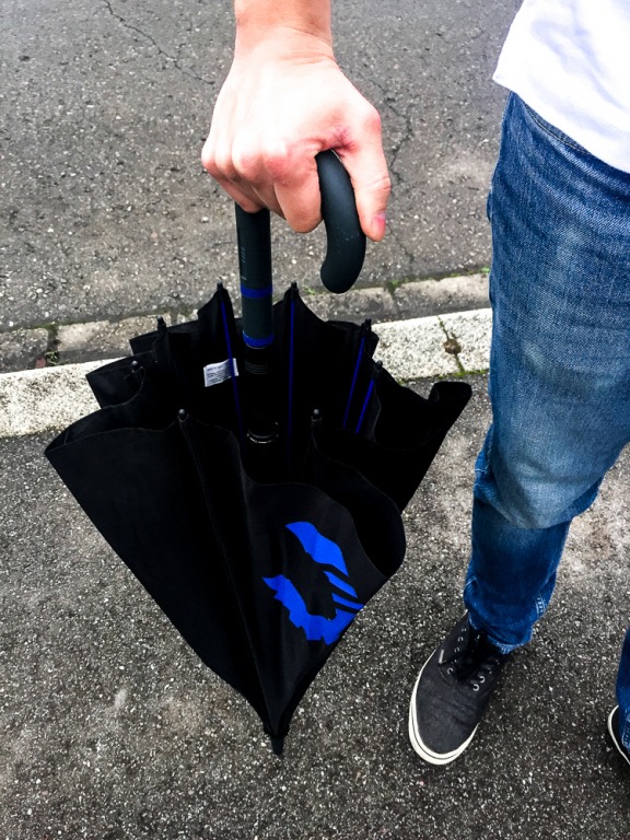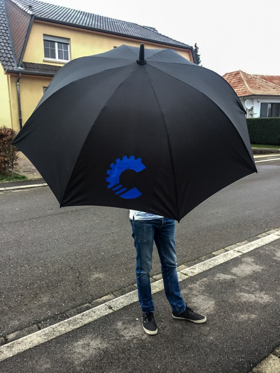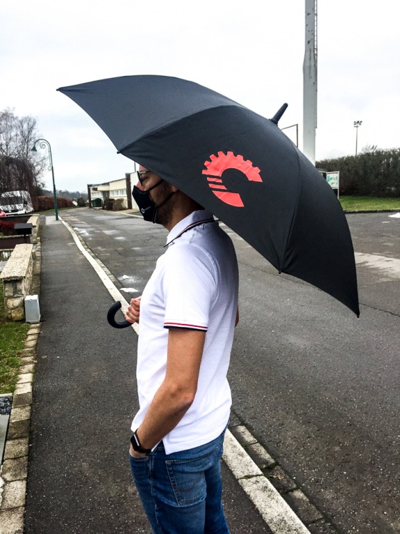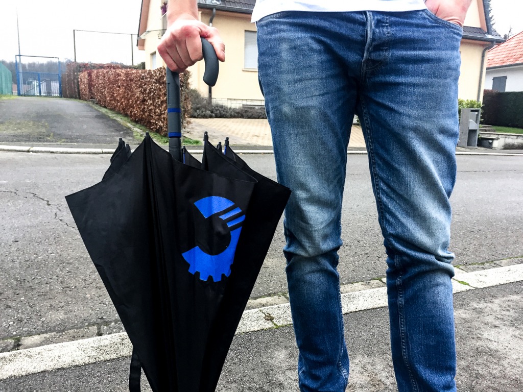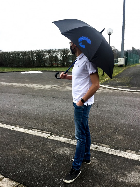 Ayant de bonnes connaissances dans la production de goodies, nous avons trouvé des parapluies de bonne facture. Pour ce type de produit, le flocage était la technique recommandée.