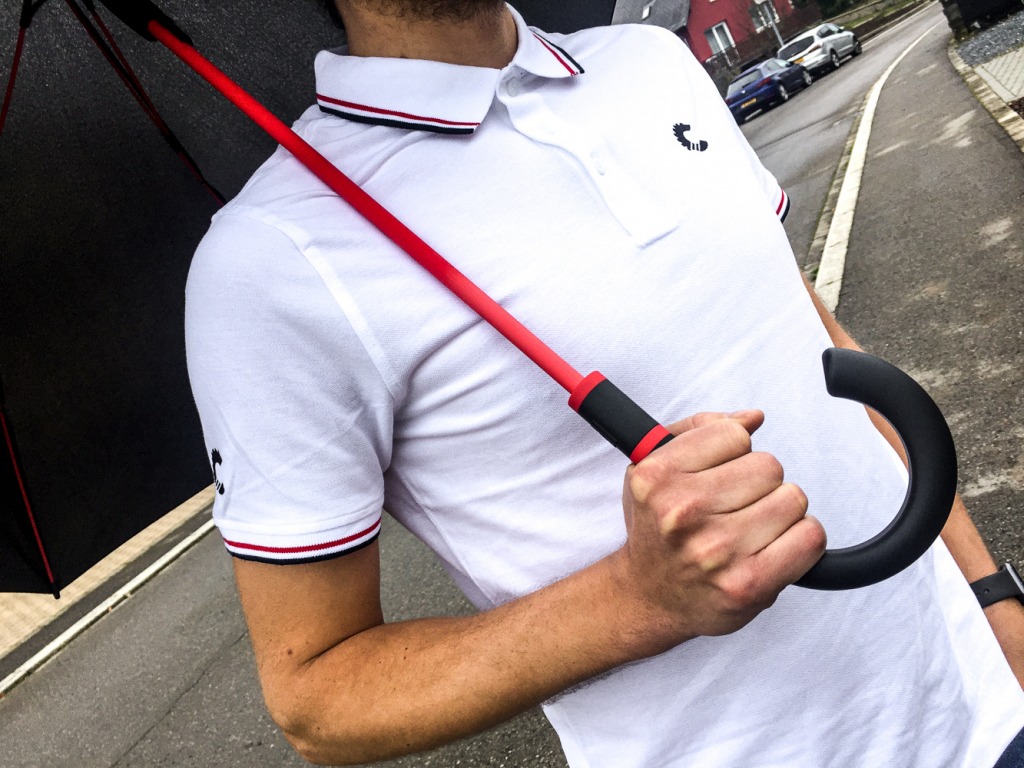 Trouver des parapluies avec le manche en couleur correspondant à celui de l’entreprise.