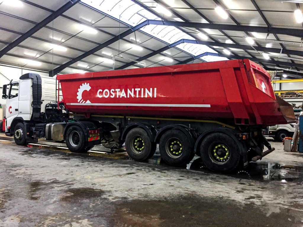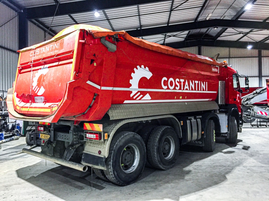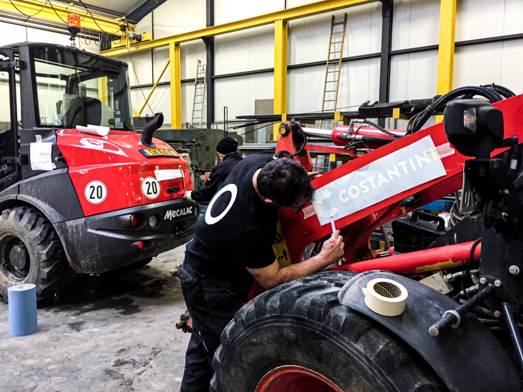 La société Costantini nous a confié un énorme projet consistant à déletter et relettrer près de 120 véhicules confondus ( camions, engins, grues, camionnettes,… ) Début du challenge le 4 novembre pour que les véhicules soient prêts pour le 15 décembre afin de le lettrer durant les congés de Noël ( 2 semaines )