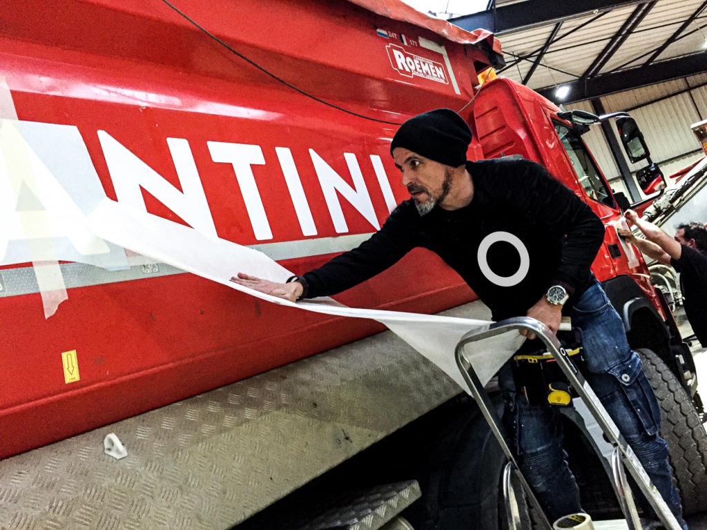Face à ce challenge et avec l’aide du personnel de chez Costantini, notre équipe a réalisé des plannings de dé-lettrage sur chantier. Une fois ce travail réalisé, nous avons programmé le lettrage de la nouvelle identité durant les congés du bâtiment. La presque totalité de la flotte a été réalisée en deux semaines.