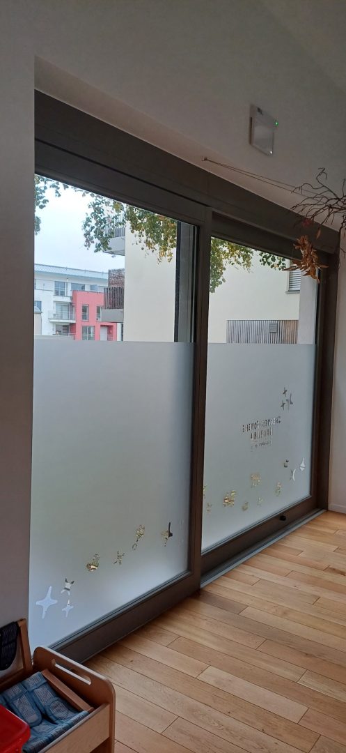 C’est le cas pour les crèches et foyers de jour Barbara où les films sablés posés par notre équipe assurent aux tout-petits une intimité totale tout en laissant entrer la lumière naturelle, créant ainsi une atmosphère lumineuse et accueillante.
