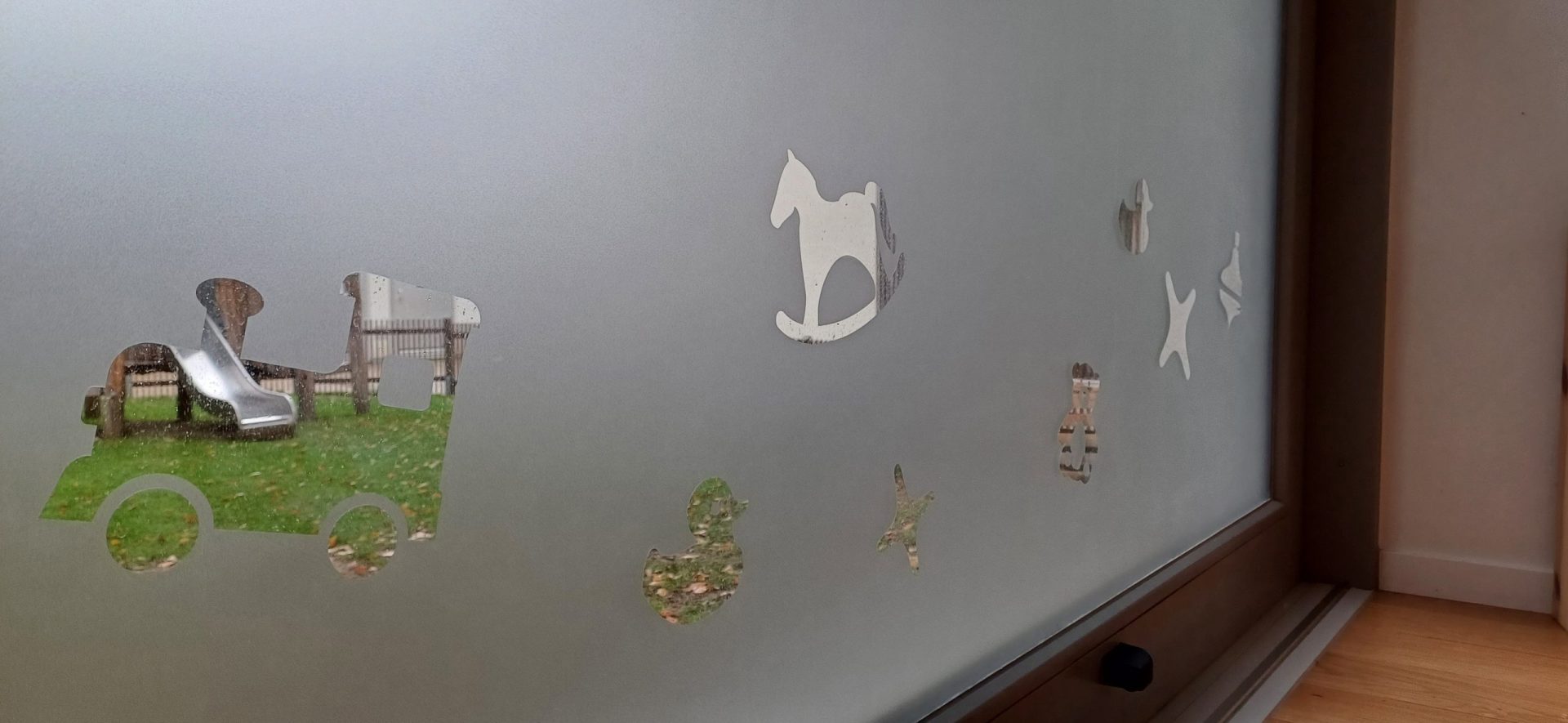 Et devinez quoi ? Notre atelier personnalise également vos sablages à votre guise ! L’exemple ici avec des motifs adorables qui mettent une touche de fantaisie à l’environnement de la crèche.