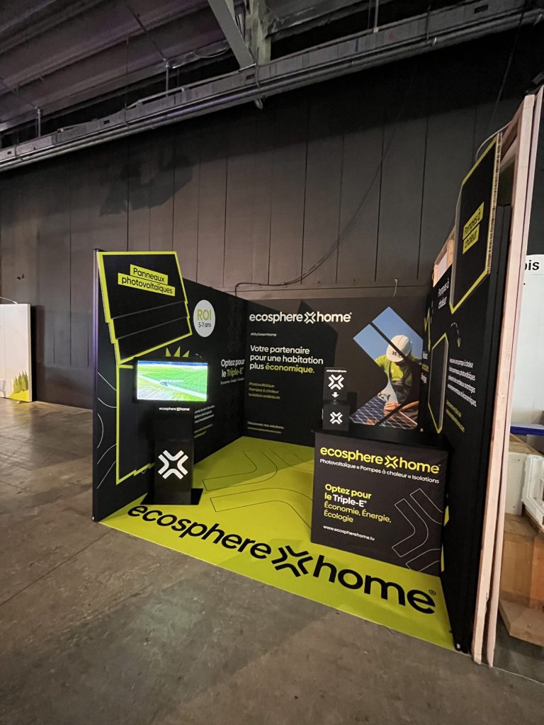 À l’occasion du salon HOME EXPO à LuxExpo – The Box, dédié à l’habitat et à la Semaine Nationale du Logement, Hello Deco a collaboré avec l’entreprise de solutions solaires Ecosphere Home pour créer un stand sur mesure alliant innovation et impact visuel.