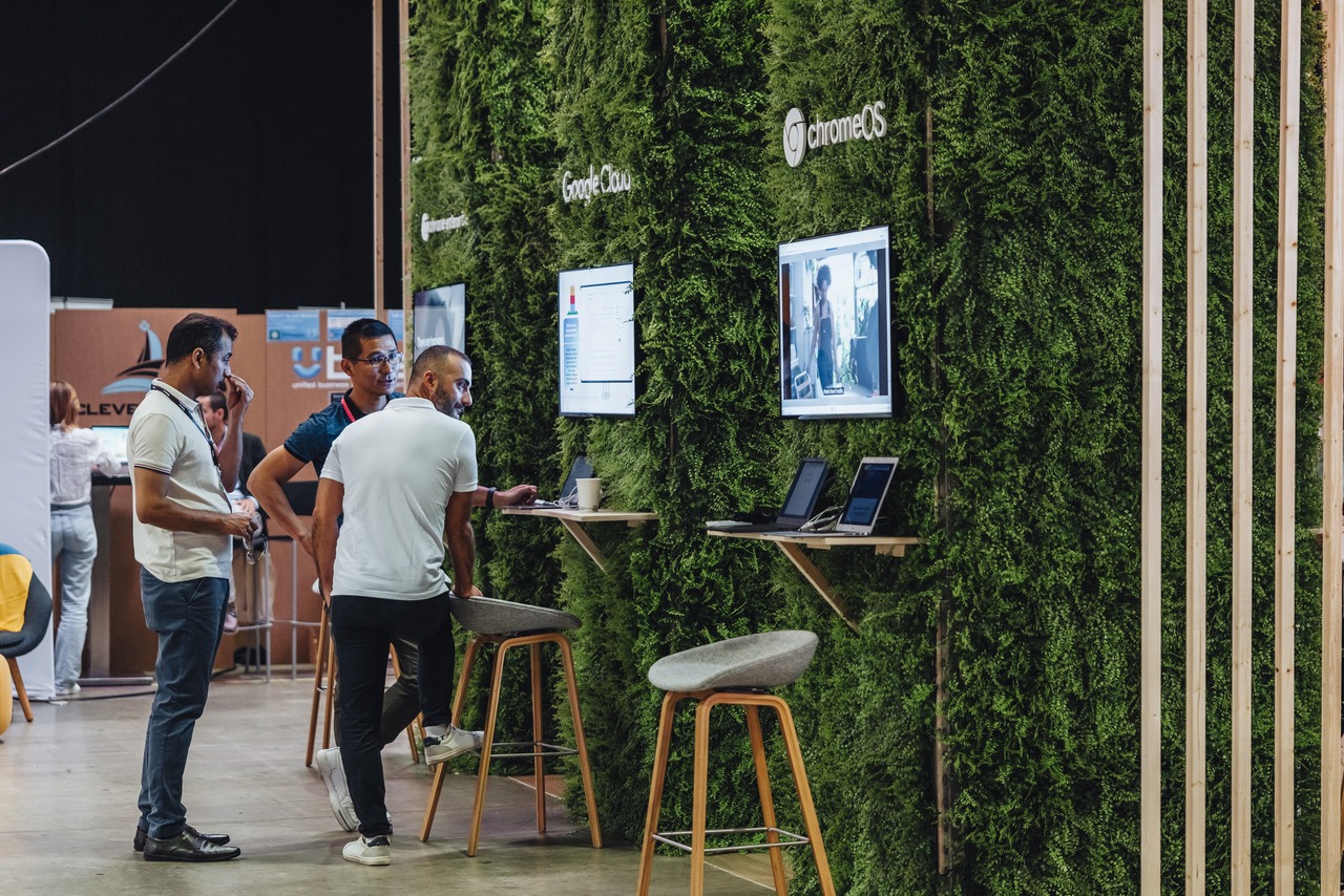 Laquelle vous préférez ? L’imposante enseigne suspendue Google ou les petites entourées de verdure ?