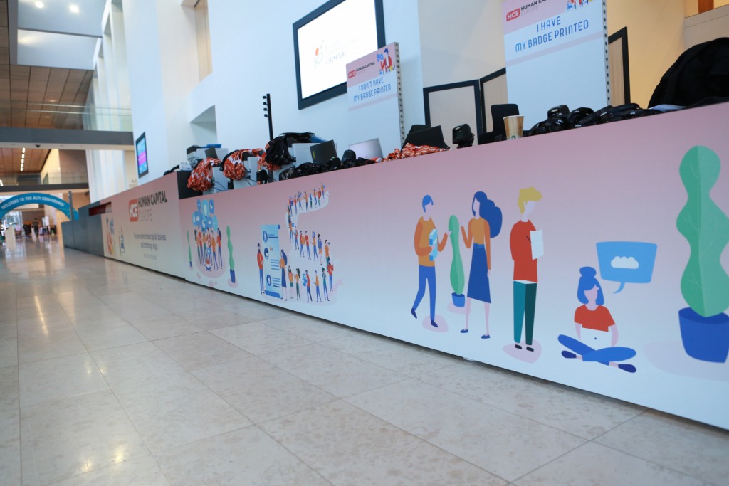 Farvest organisait son salon « Human Capital Europe », un sommet international au Luxembourg. L’entreprise souhaitait habiller le desk d’accueil, dans un grand format !