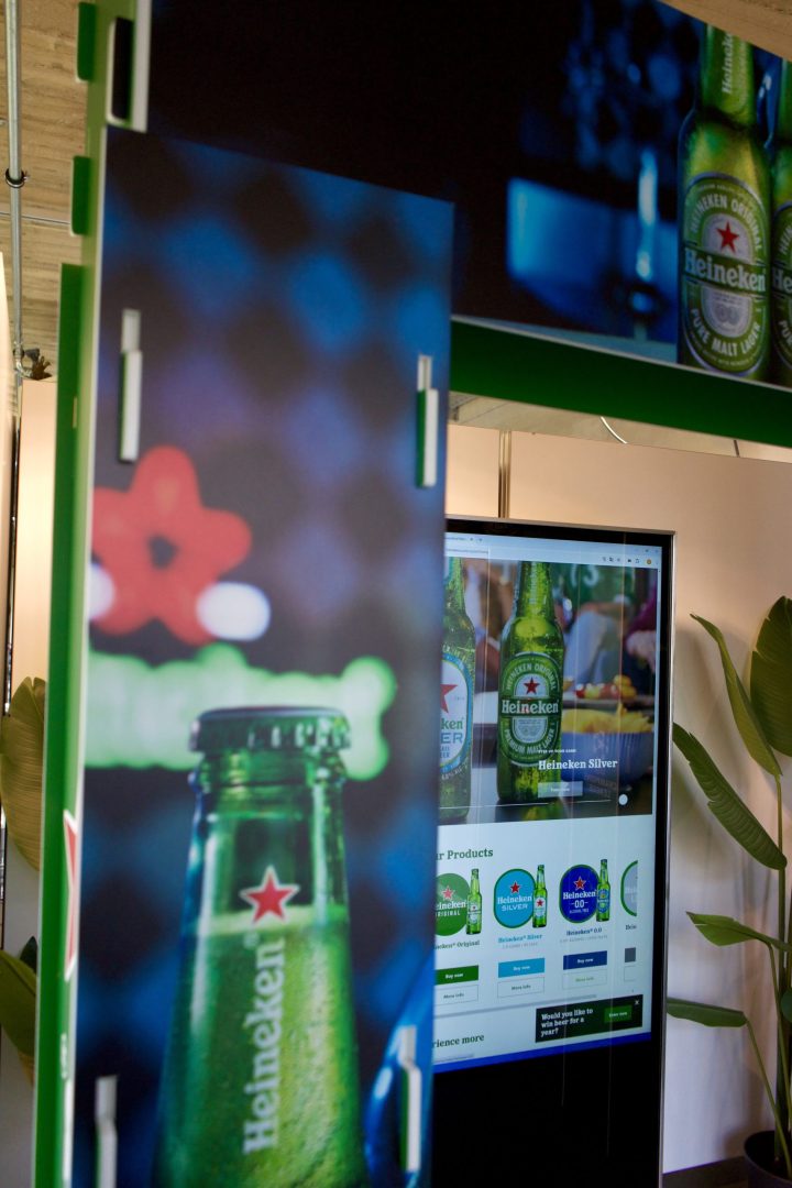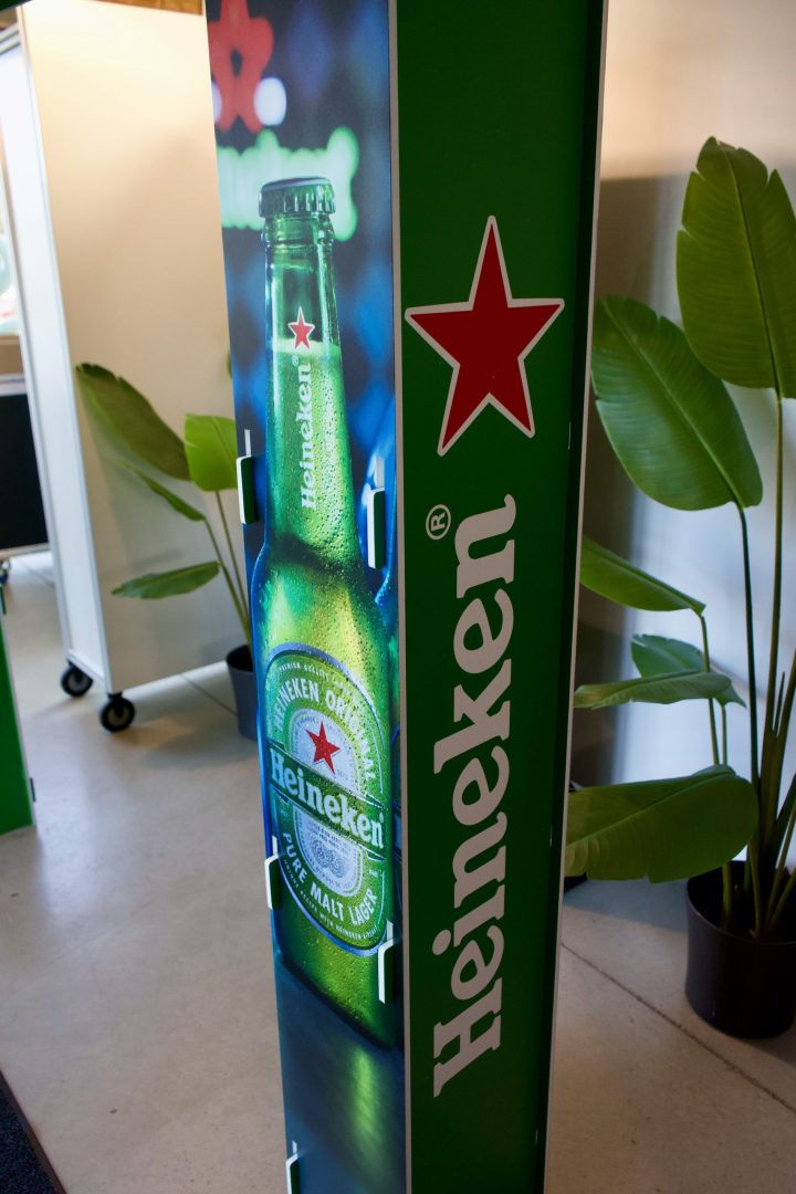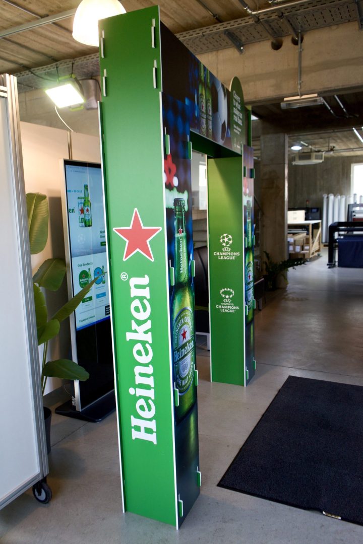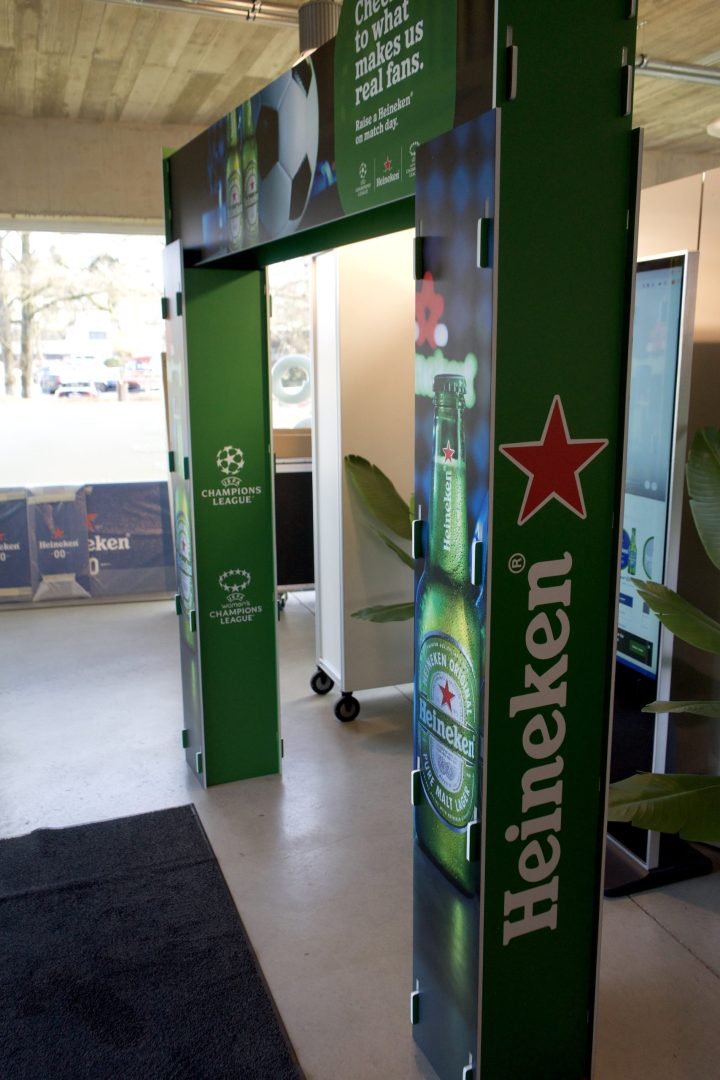 Hello Deco a conçu et fabriqué une arche publicitaire sur mesure pour Fixmer, mettant en avant le sponsoring de Heineken lors de la Champions League.