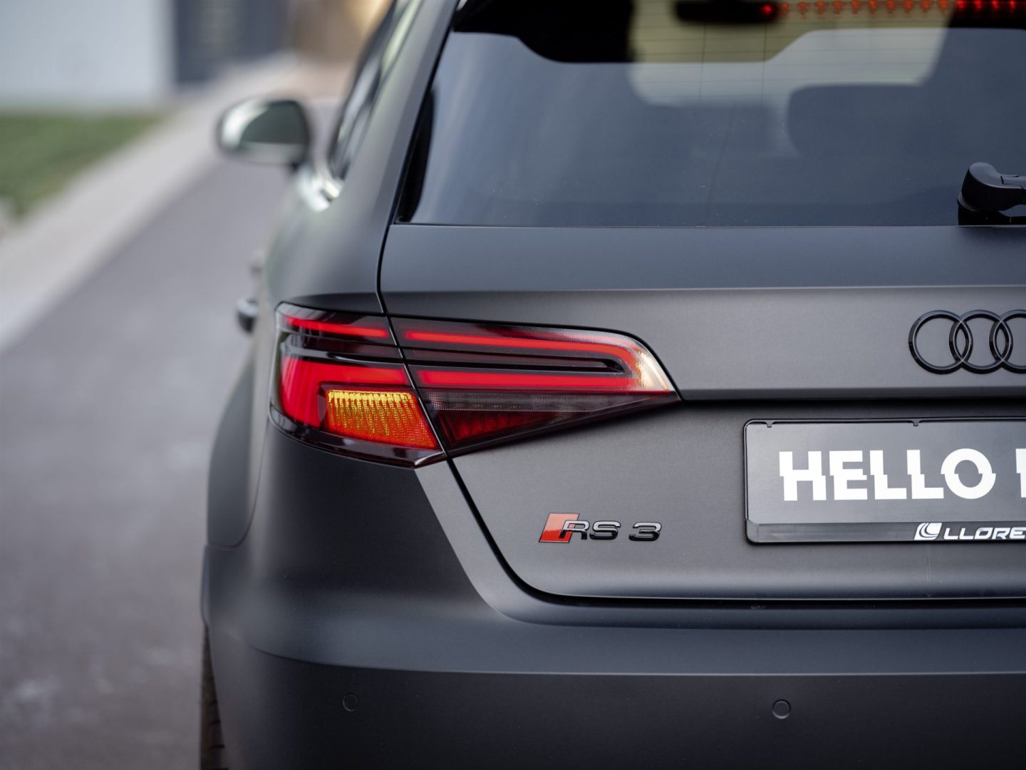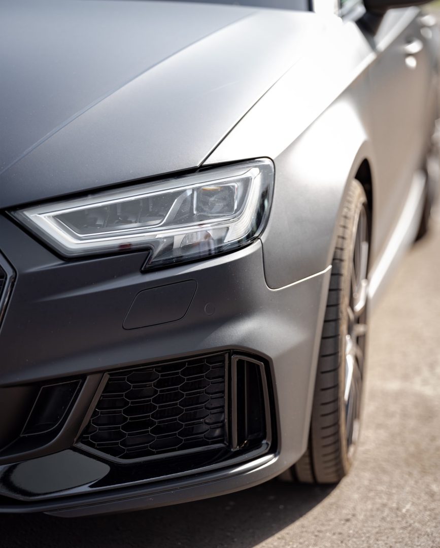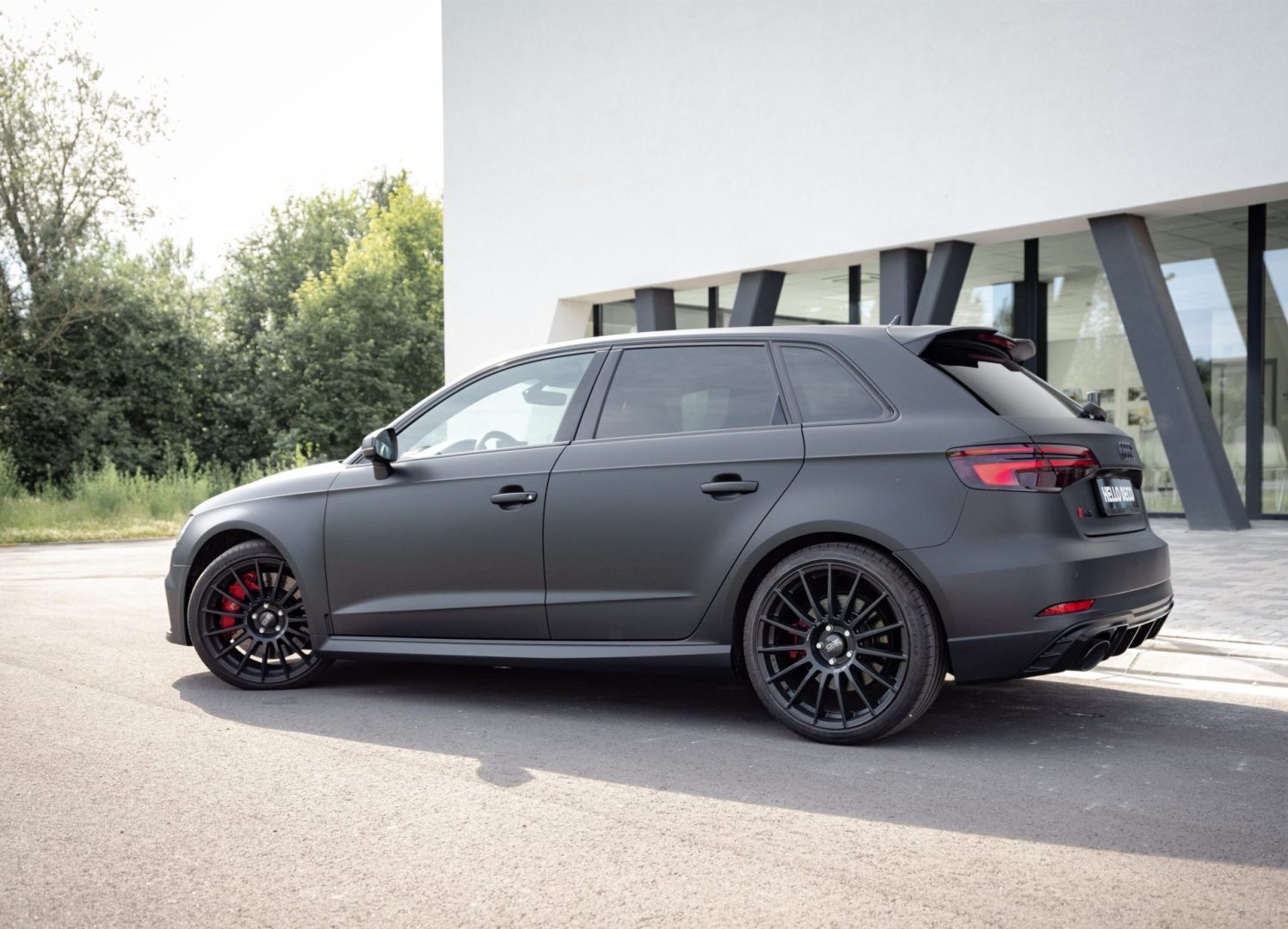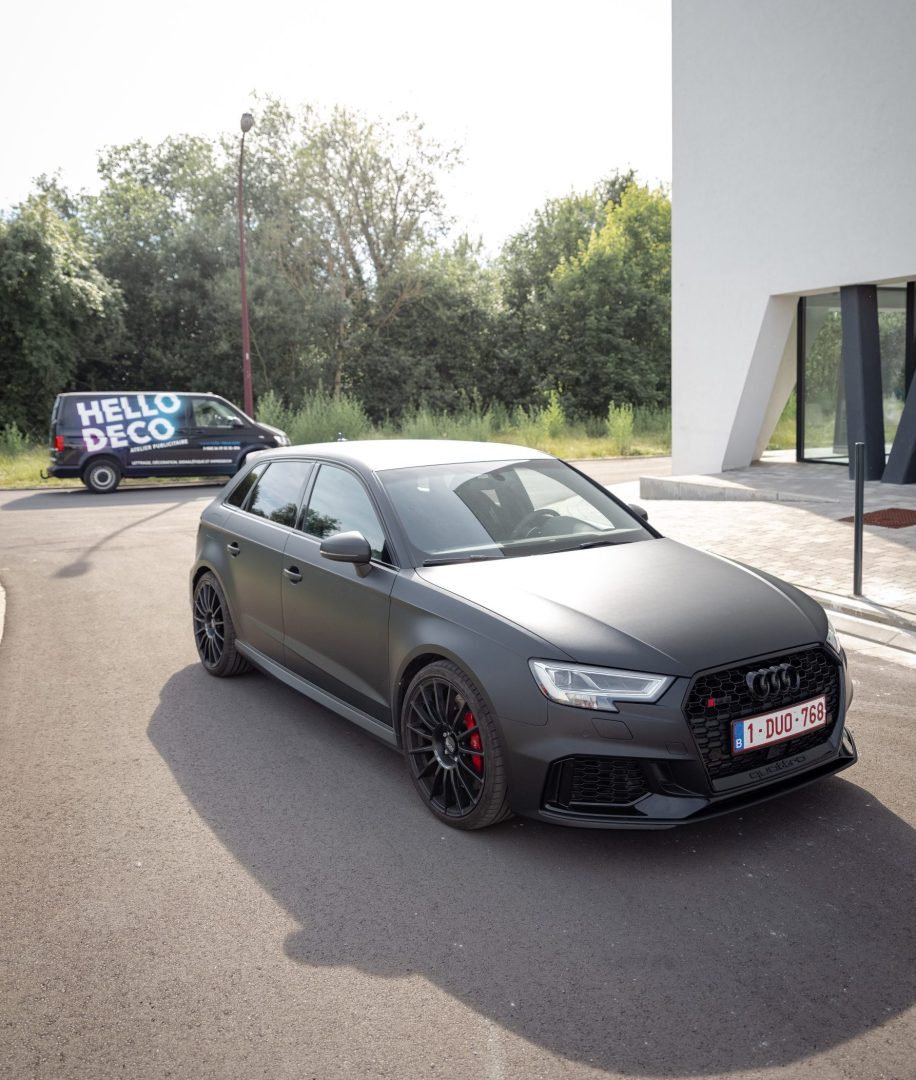 Cette Audi RS3 est passée en noir mat et noir brillant après démontage partiel des pièces de carrosserie.