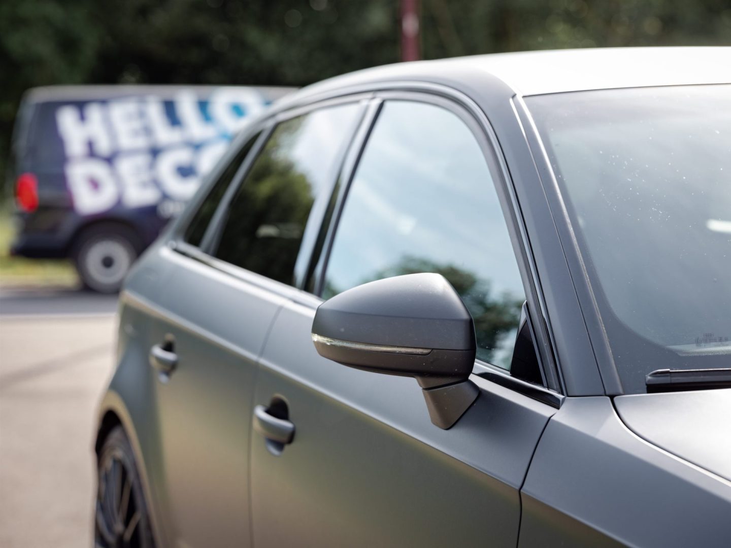 Full covering en vinyle 2080 noir mat et noir brillant de chez 3M réalisé par notre atelier publicitaire.