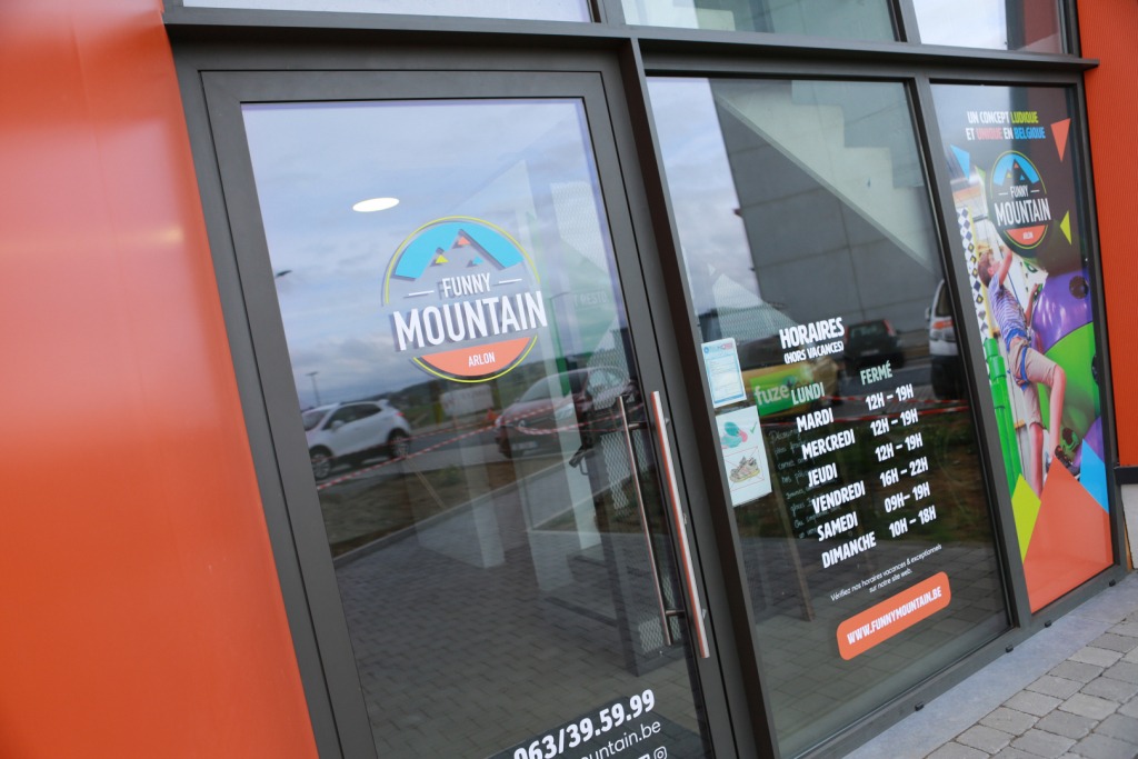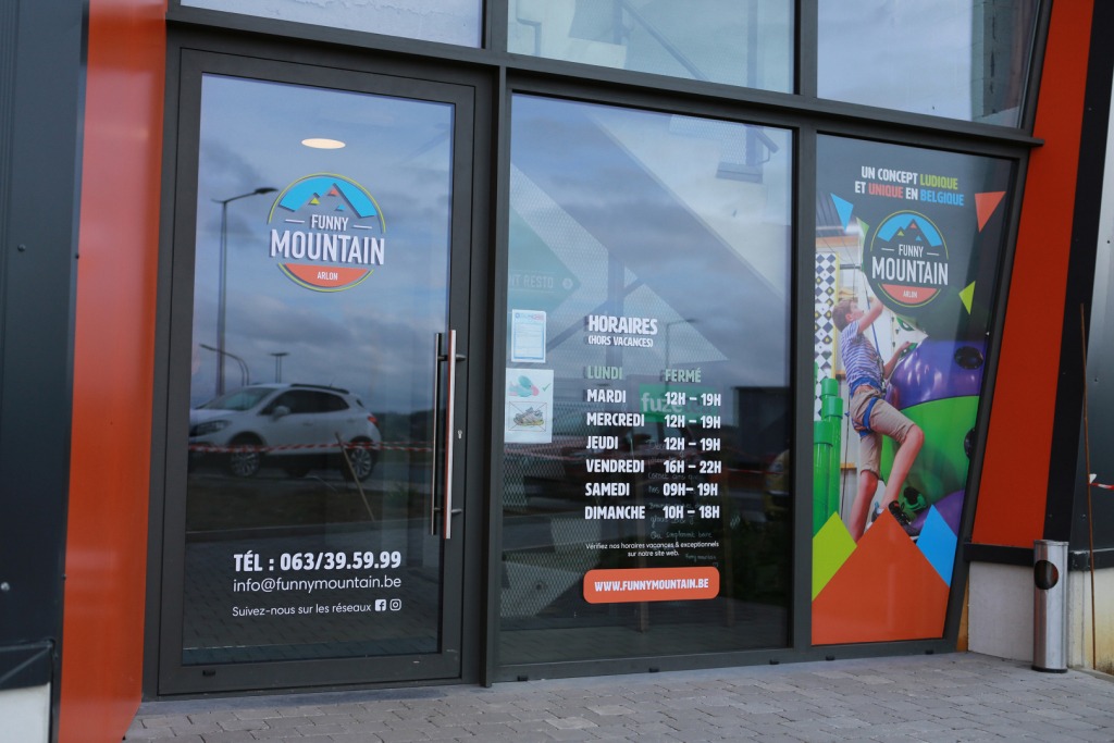 Funny Mountain, notre client accro à l’escalade, souhait renseigner efficacement les horaires d’ouverture tout en masquant le dessous de l’escalier lui servant d’espace de stockage.
