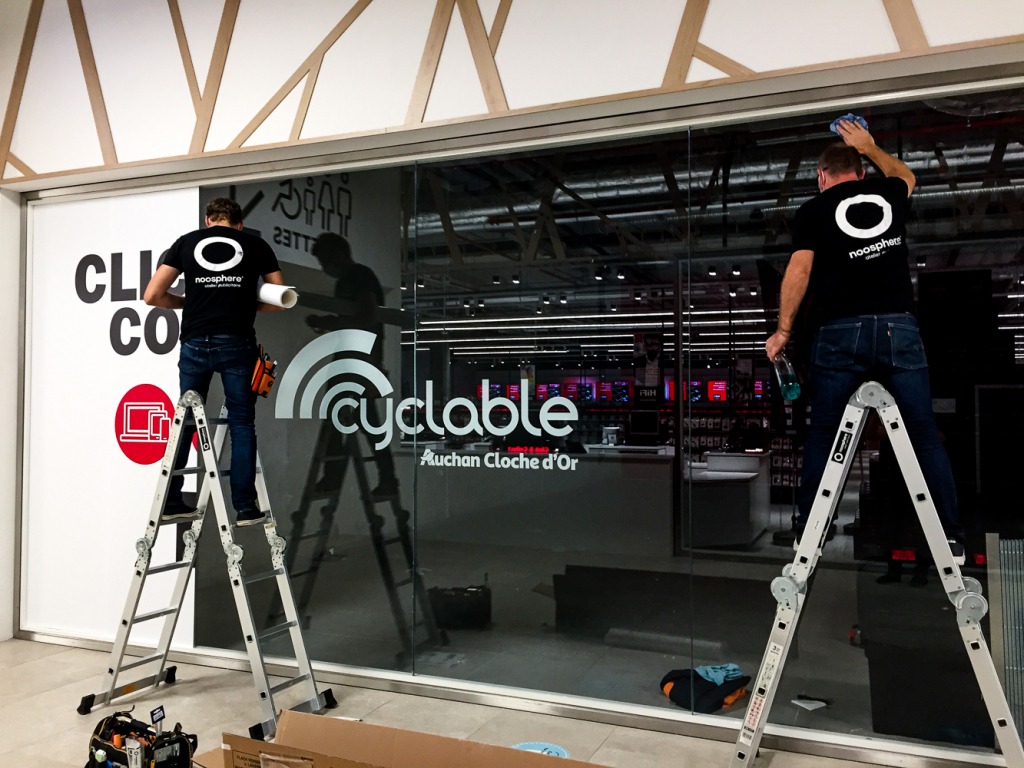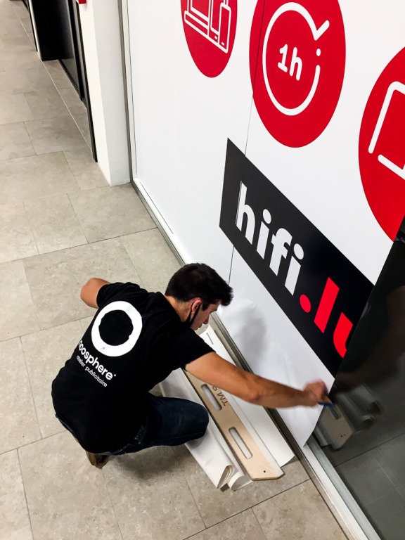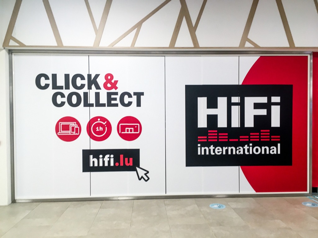 Le super centre commercial La Cloche d’Or accueillait un nouveau magasin dans son espace shopping : l’enseigne Hifi International. Afin d’augmenter sa visibilité, la marque nous a confié le lettrage de sa vitrine.