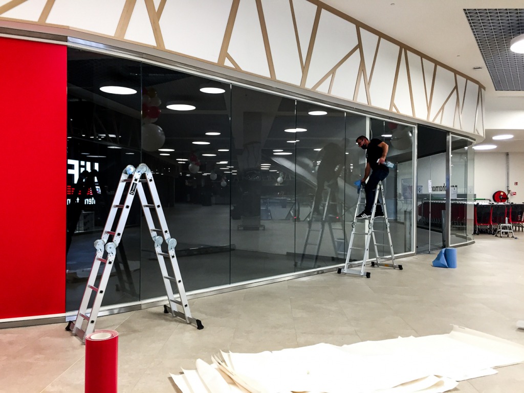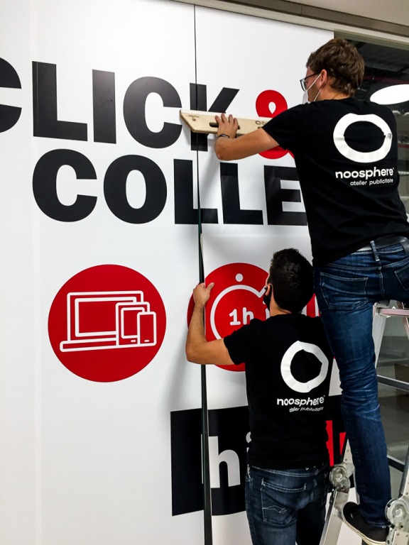 Nous avons lettré plus de 100 m2 de vitrine, en vinyle adhésif.