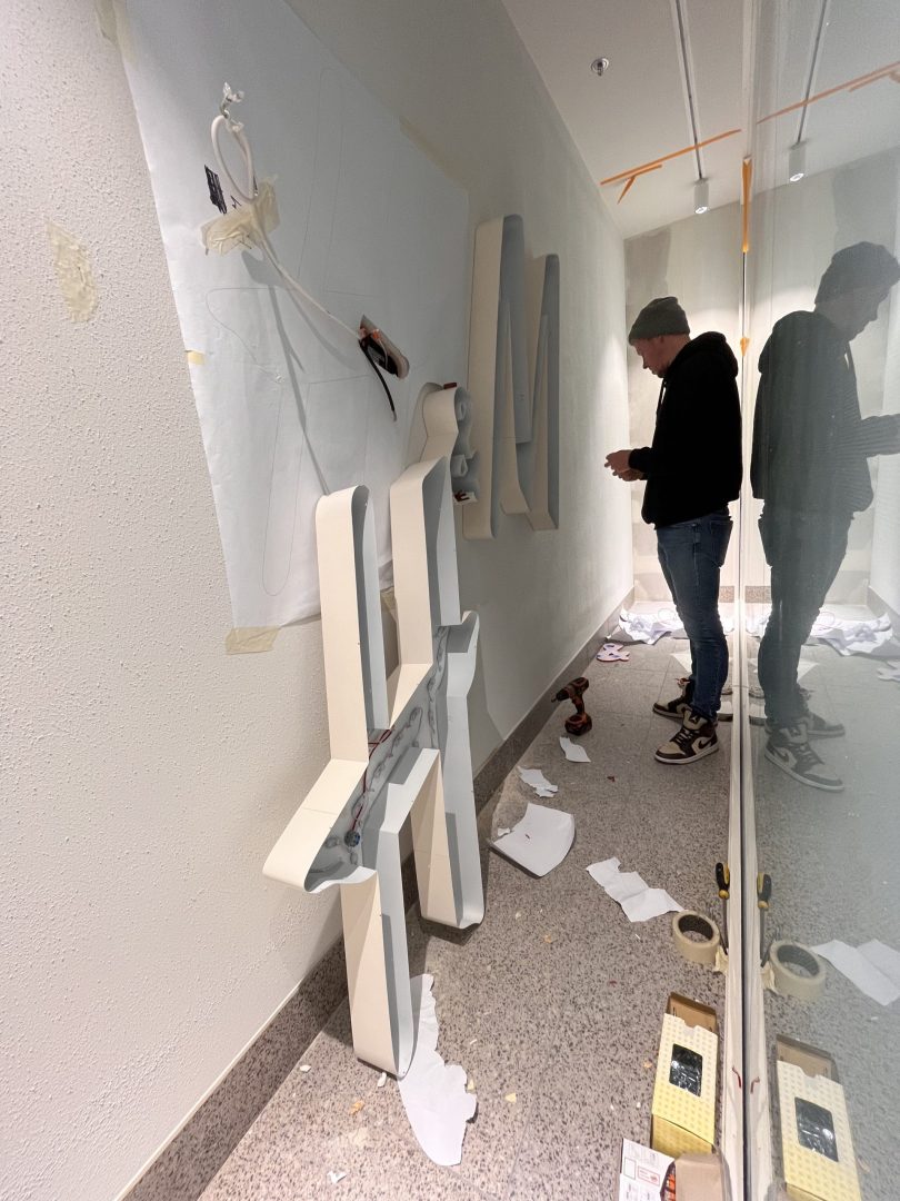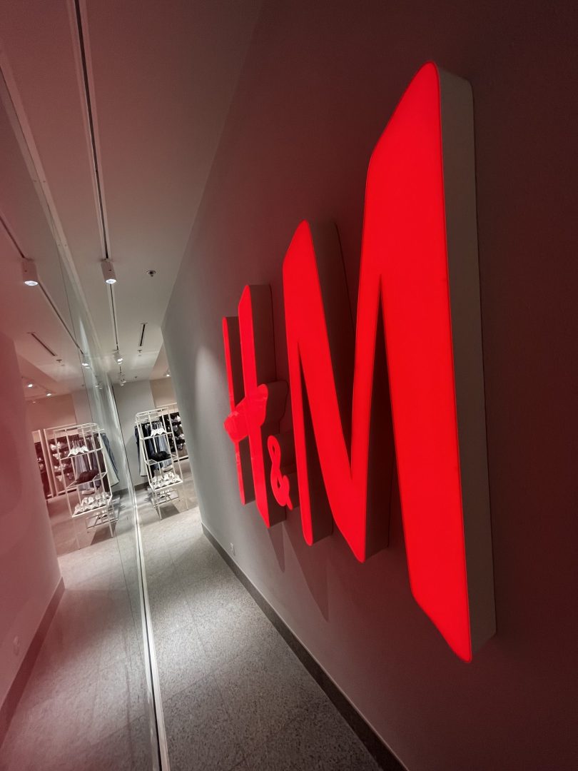 Notre équipe a créé des lettres boîtiers en aluminium blanc, dotées d’un éclairage LED intégré. La face avant en acrylique rouge et le câblage soigneusement dissimulé assurent une finition nette et épurée, en harmonie avec l’identité visuelle d’H&M.