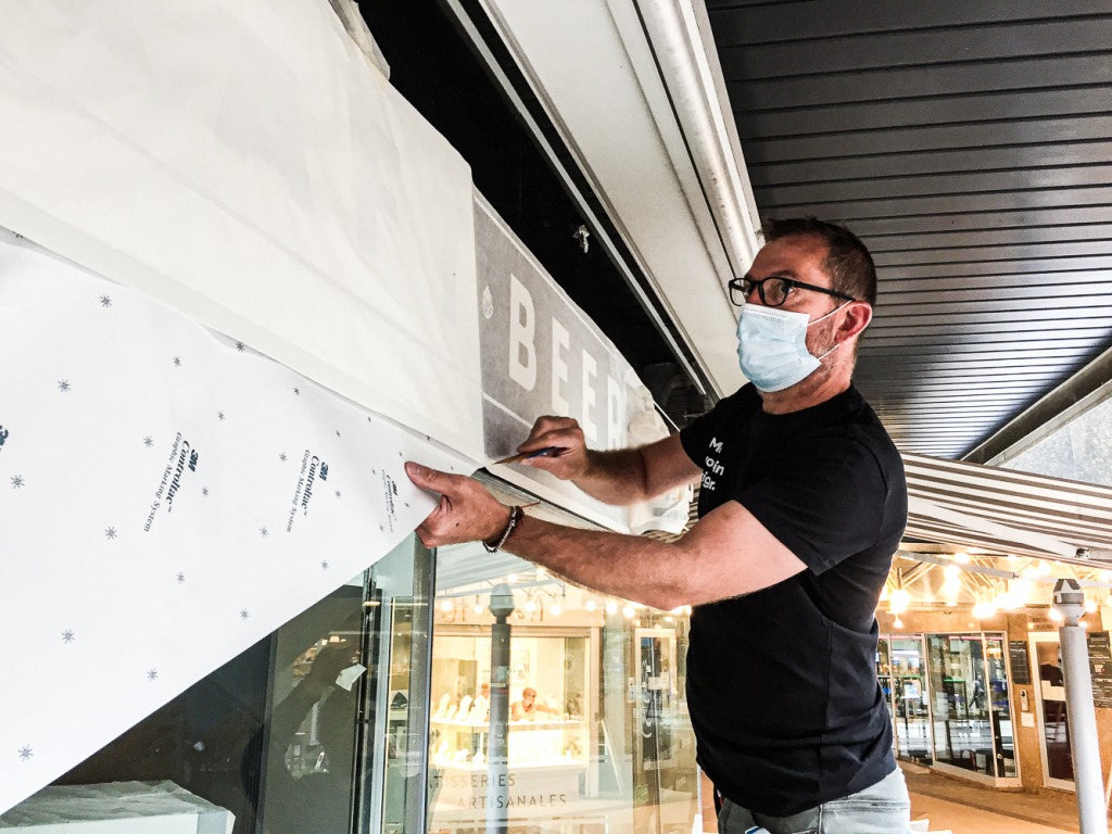L’objectif était simple : lettrer la vitrine aux couleurs du magasin et donner envie aux clients de s’y rendre ! Nous nous sommes rendus sur place, avons pris les mesures et avons produit les vinyles avant de les installer.