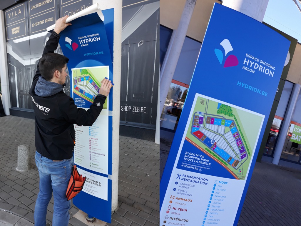 L’Espace Shopping Hydrion est un centre commercial situé à Arlon, en Belgique. Notre client souhaiter mettre à jour le visuel de son totem publicitaire.