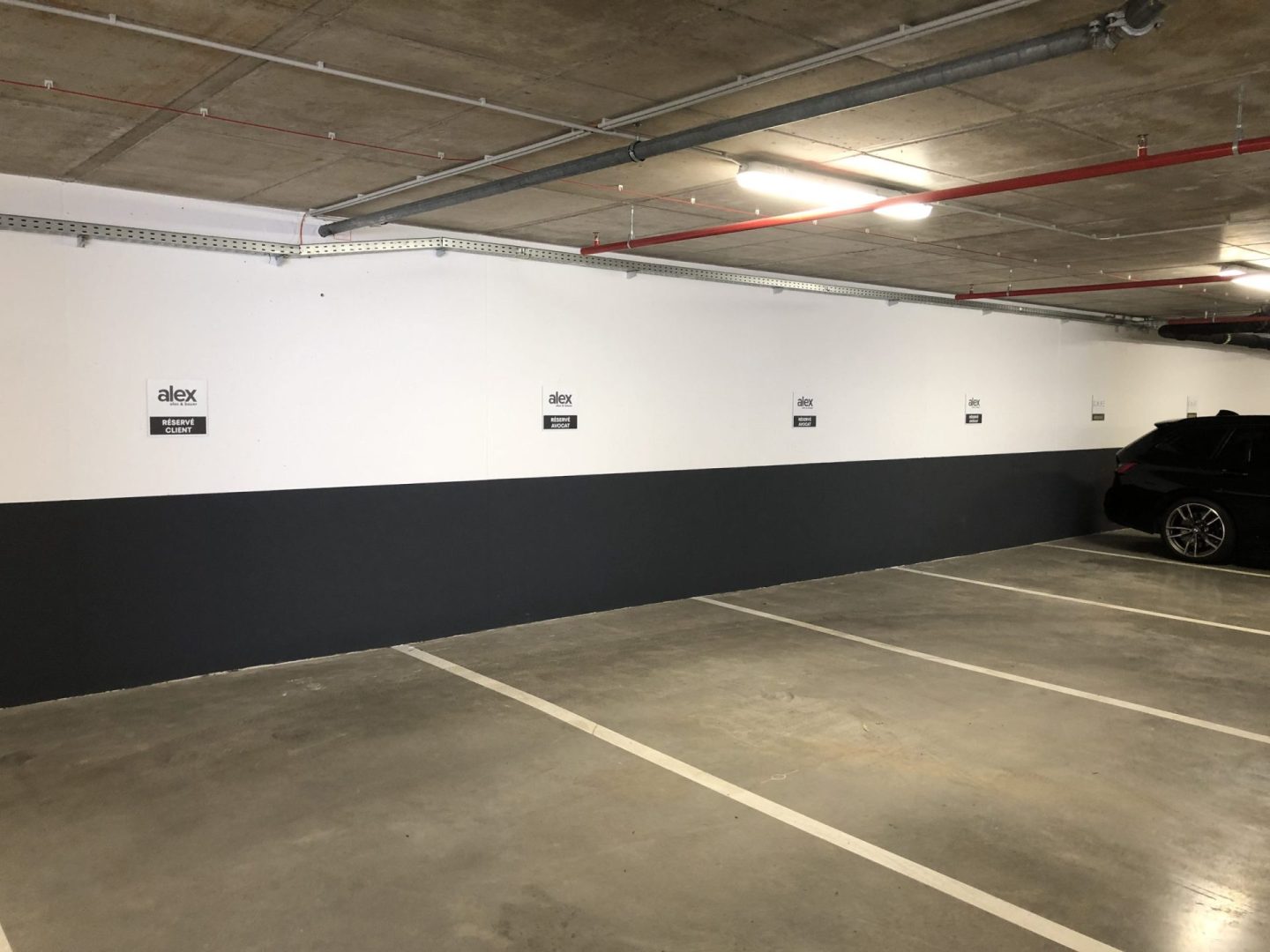 De l’entrée au parking, en passant par les ascenseurs, impossible de s’y perdre : panneaux Dibond, panneaux avec logo fraisé en 3D, sablage sur vitres, stickers du logo.