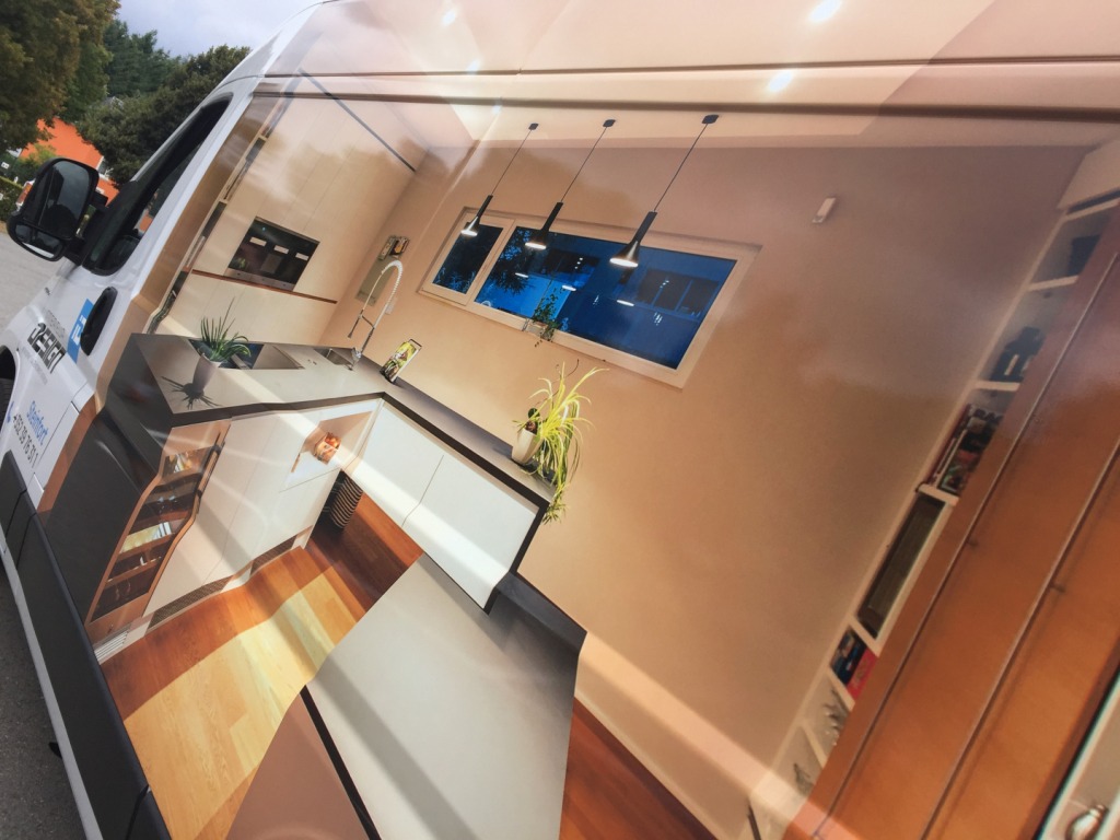 Profiter de l’espace de la camionnette pour projeter les prospects dans une ambiance réalisée par l’entreprise.
