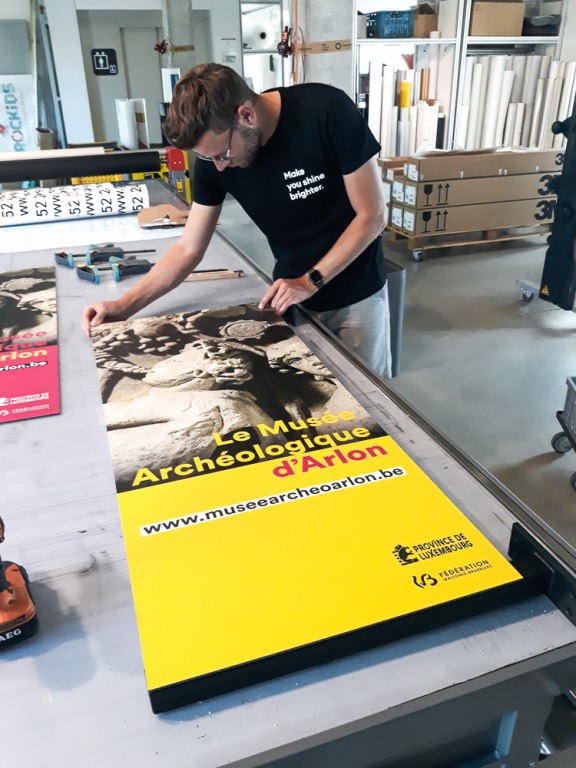 Intrépide Studio a à nouveau collaboré avec notre atelier pour son client, le Musée archéologique d’Arlon. Objectif : augmenter la visibilité du musée pour les véhicules circulant dans la rue.