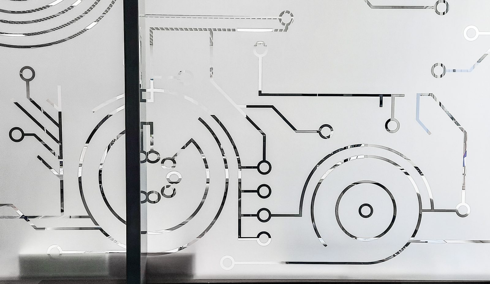 Pose d’un sablage aux motifs découpés pour la société d’engins agricoles et de construction John Deere.