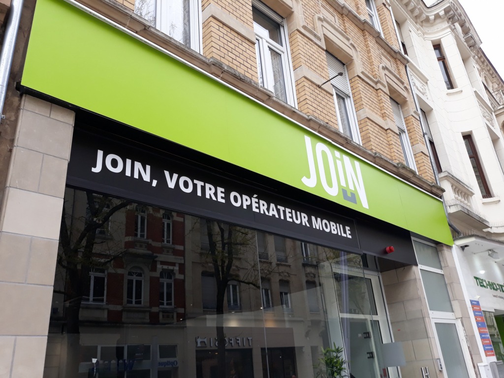 Join, l’opérateur luxembourgeois, nous a confié la production d’une enseigne de magasin afin d’augmenter sa visibilité depuis la rue.