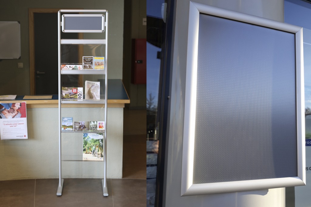 Nous avons proposé un chevalet sur roulette, plus facile à déplacer. Nous proposons également d’autres types de modèles, ainsi que des cadres clip.