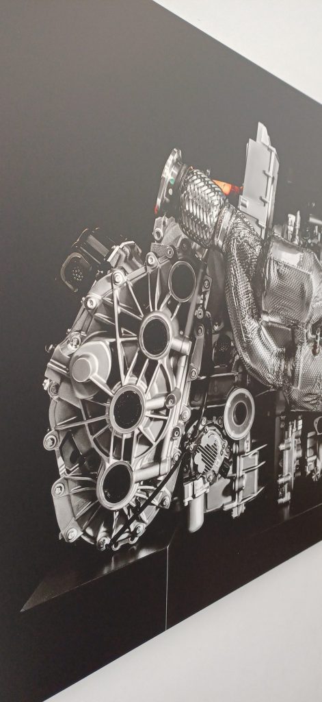 Imprimée sur Dibond blanc perlé grâce à notre imprimante à plat Mimaki, cette création reflète la qualité et l’élégance recherchées par la marque. Fixée sur cadre, elle s’intègre parfaitement à l’ambiance du showroom.