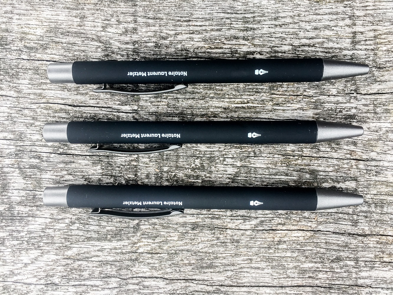 Le notaire Laurent Metzler nous a confié la réalisation et la production de bics personnalisés.