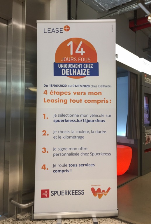 Dans le cadre de l’action nationale de Delhaize Luxembourg, LeasePlan s’est associé à Superkeess et l’enseigne au lion afin de mettre en avant son offre de leasing privé. Mais comment mettre ça en avant dans les magasins concernés ?