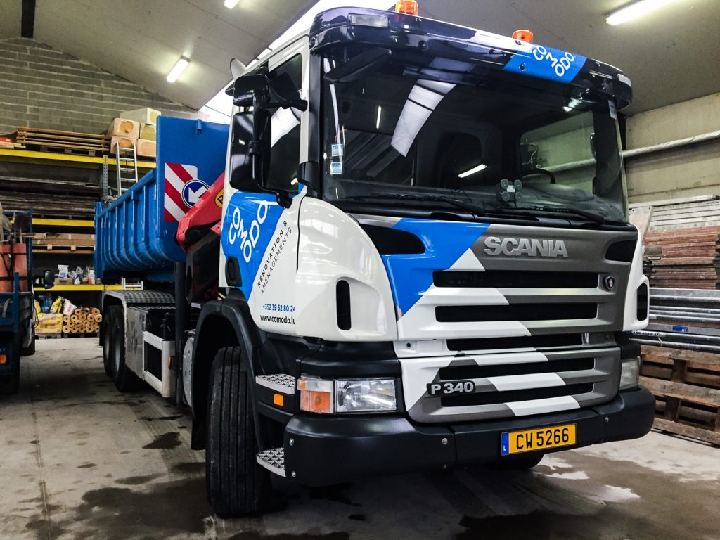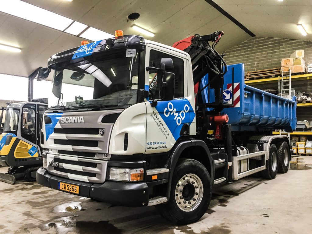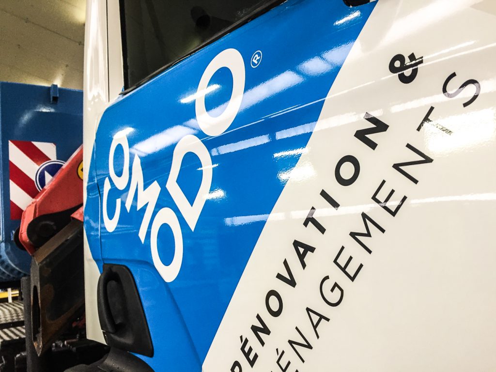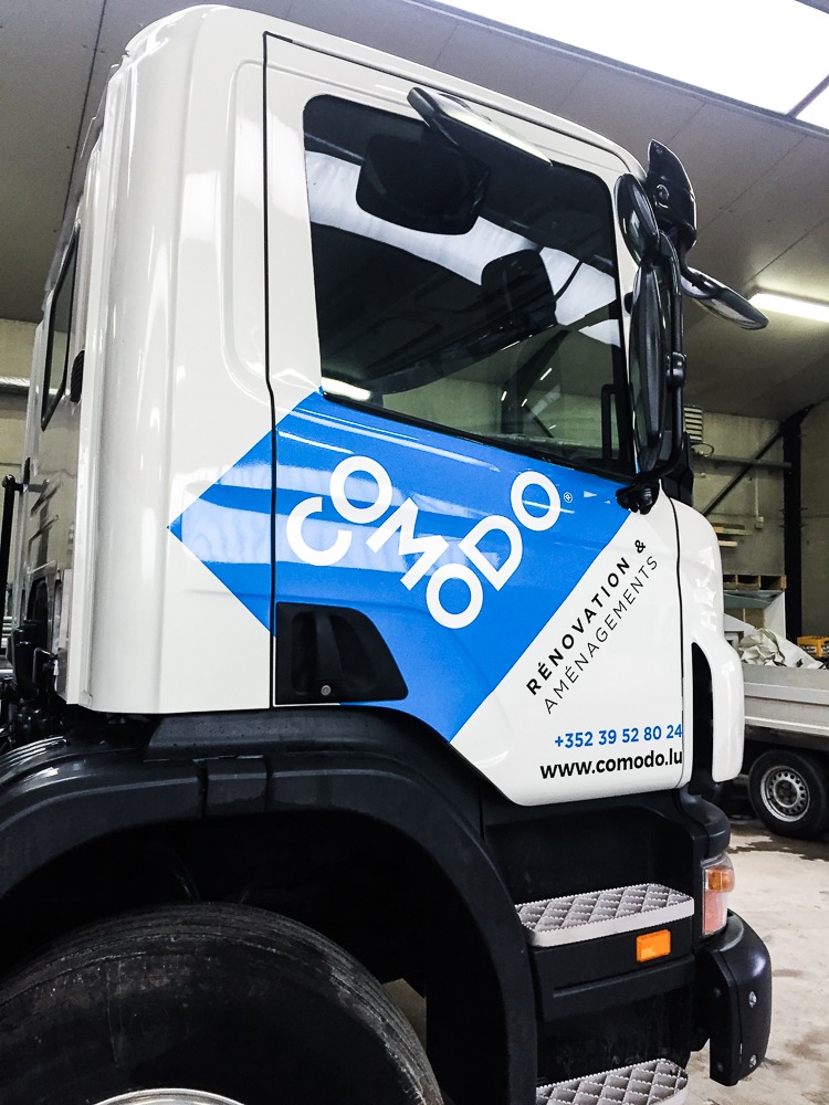 La société Comodo nous a confié le lettrage d’un de ses camions ainsi que d’une mini-pelle.