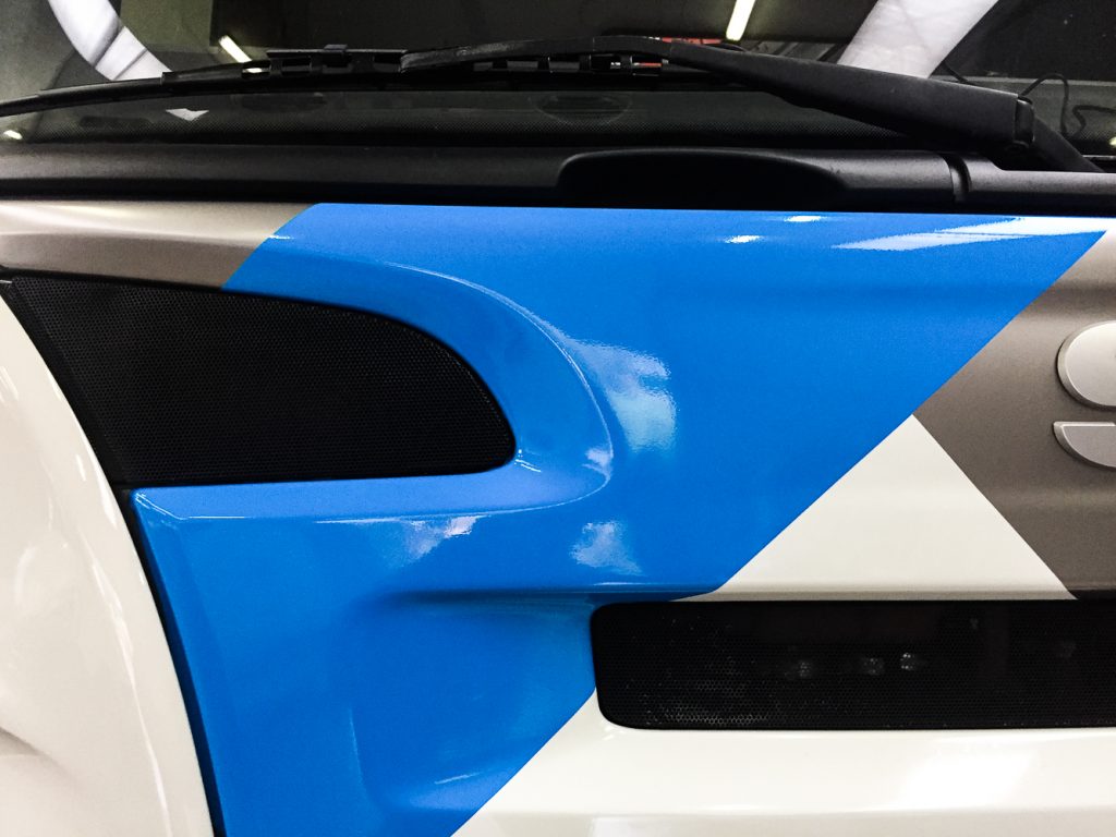 L’idée était de réfléchir au mieux au design tout en respectant les contraintes techniques liées aux 2 véhicules. Nous avons ensuite été sur place lettrer l’ensemble, pour diminuer le temps d’immobilisation du véhicule.