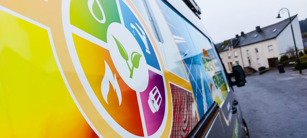 Nous avons produit le design, adapté le support aux dimensions du véhicule et lettrer celui-ci le plus rapidement possible afin qu’il soit vite sur les routes.