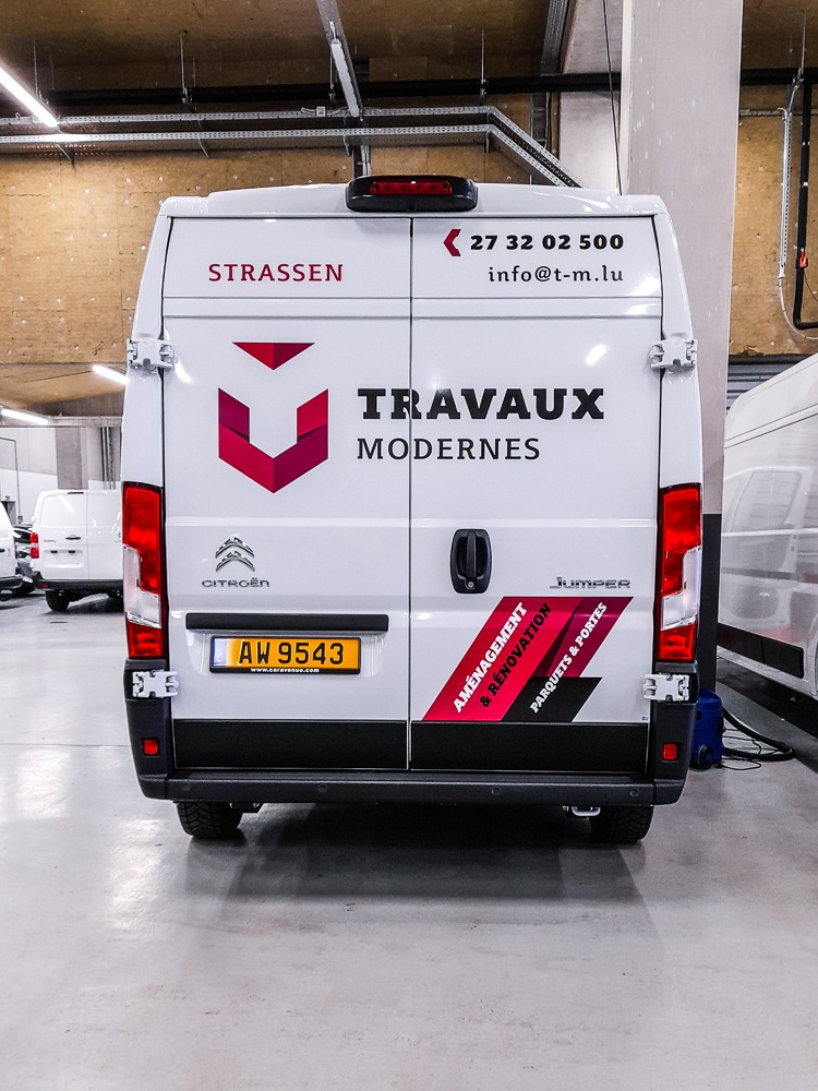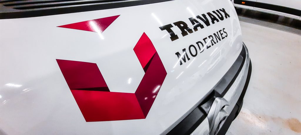 Travaux Modernes, société de Castel Groupe, nous a confié le simple lettrage de sa camionnette.