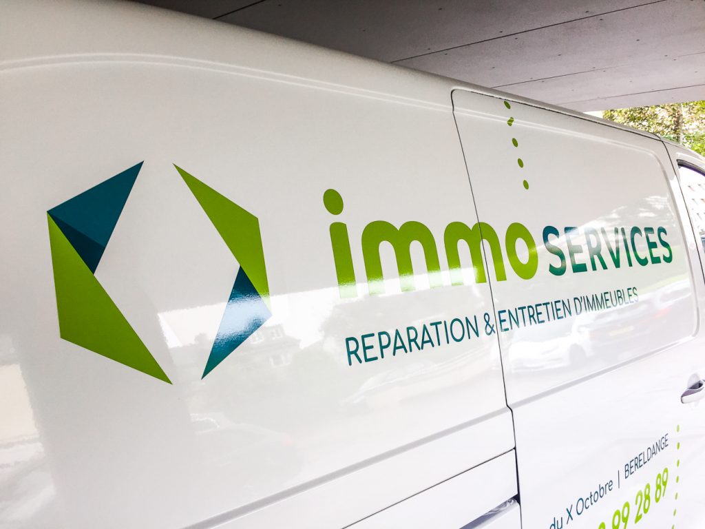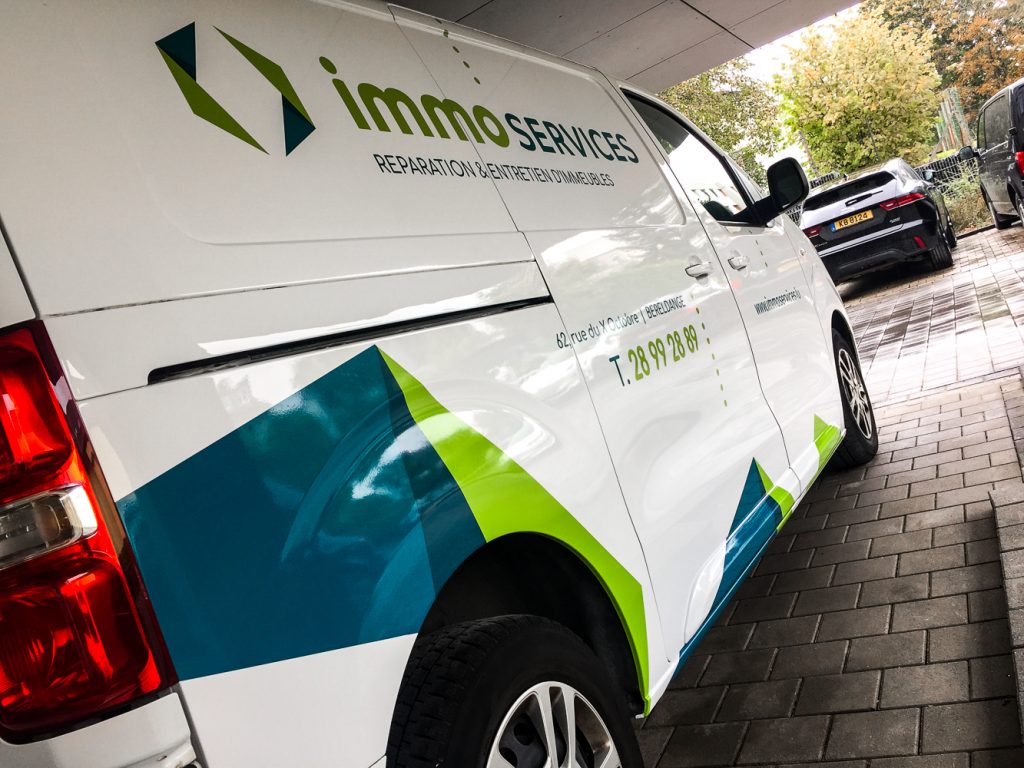 Après un accident sur le flanc de la camionnette, notre partenaire Immoservices avait besoin d’un nouveau lettrage pour son véhicule.