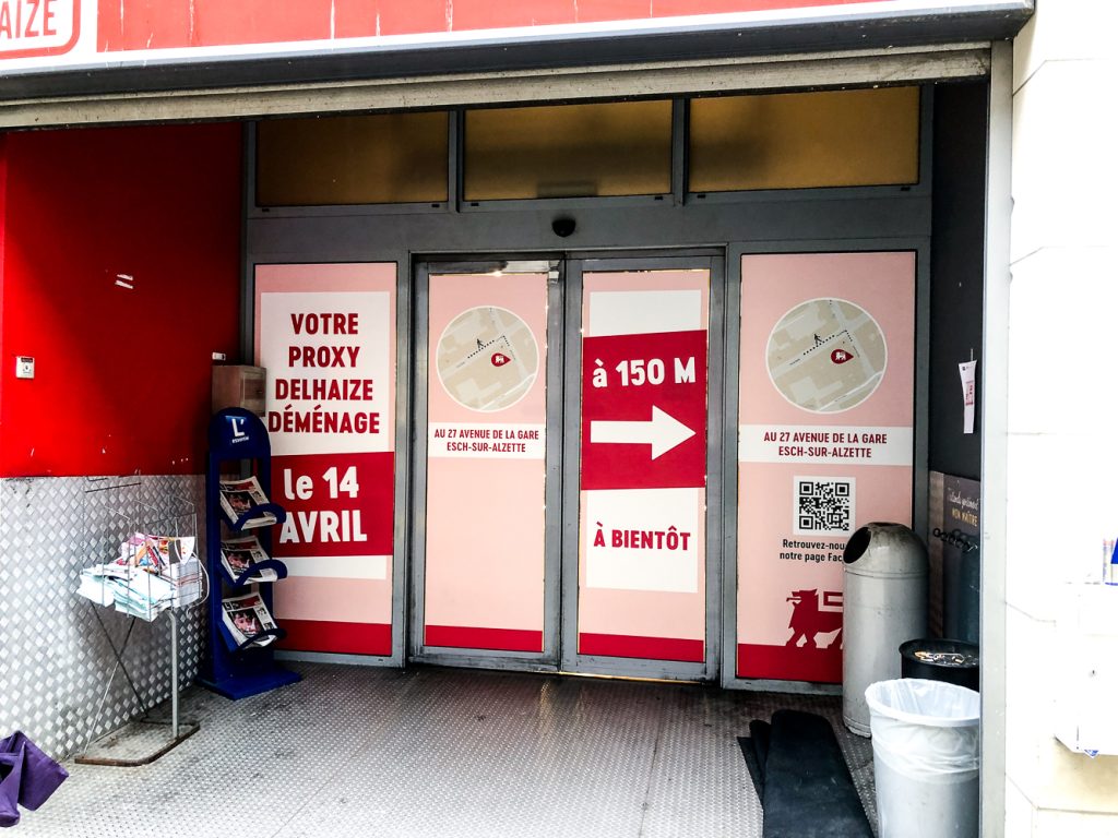 Et encore un nouveau projet pour notre très fidèle client Delhaize Luxembourg. Ici, l’équipe du Proxy Esch nous a confié le lettrage de ses vitrines pour son déménagement.