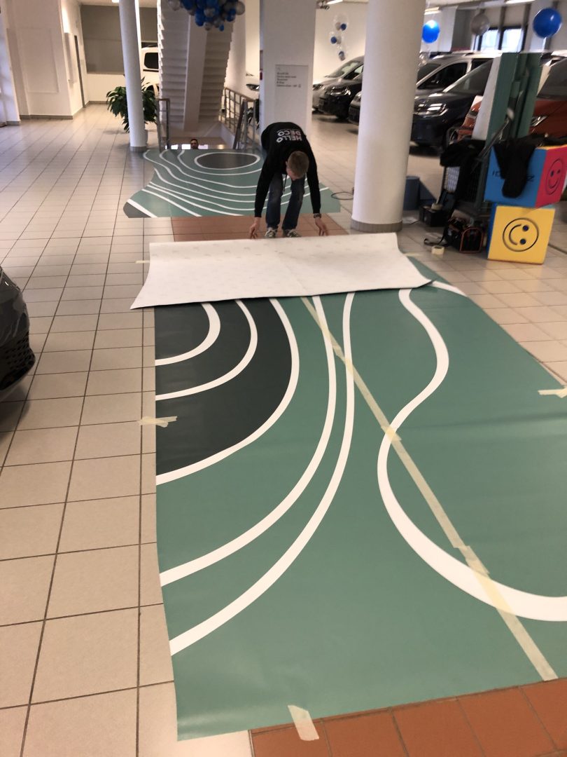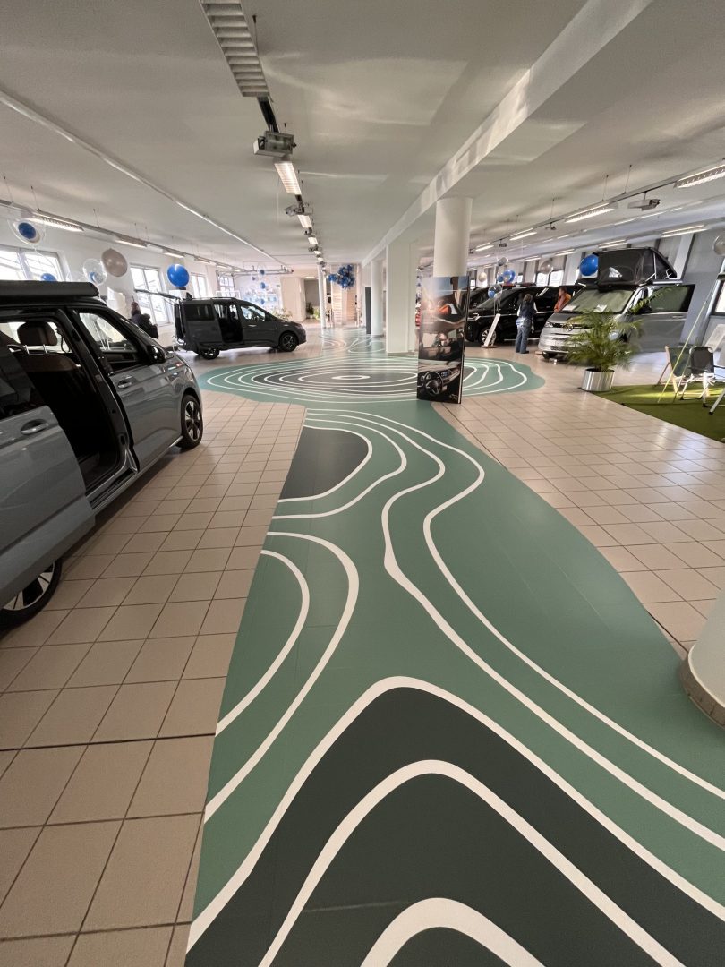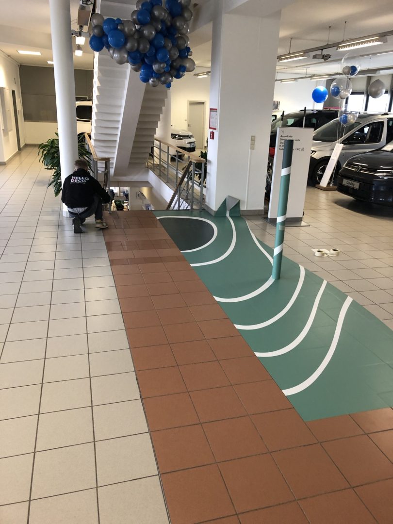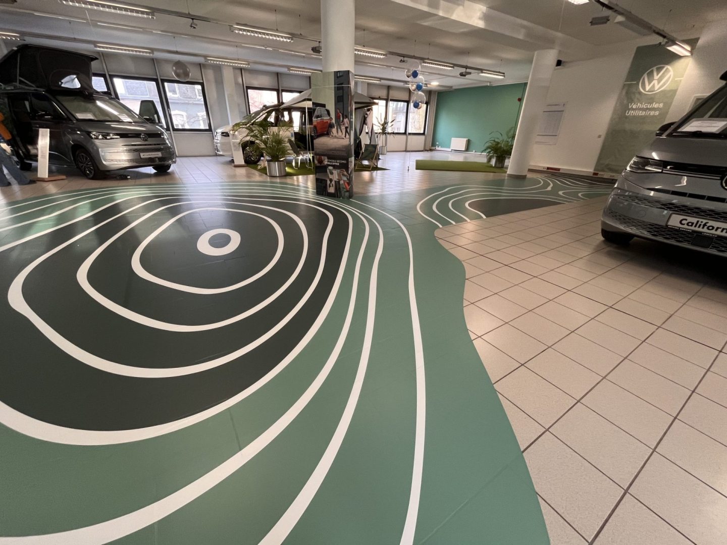 Hello Deco a eu l’opportunité d’intervenir dans le showroom Volkswagen de Losch Import à Bonnevoie pour la mise en place d’une signalétique au sol sur mesure. Ce projet ambitieux a nécessité l’installation de 120 m² de vinyle imprimé, soit un total de 80 mètres linéaires, tout en respectant scrupuleusement les codes graphiques de la marque.