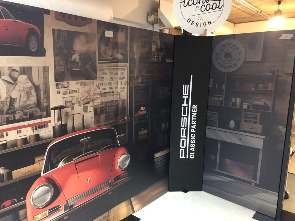 Un stand de 5m x 4m réalisé pour Losch Luxembourg à l’occasion de l’Autofestival sur le site de Roost. Un stand monté sur panneaux par notre équipe grâce à une structure réalisée par notre partenaire Igepa ; un stand qui arbore un magnifique design généré par intelligence artificielle via notre atelier. De plus, la mise à disposition d’une borne digitale a permis aux visiteurs de découvrir le musée de Porsche en 3D.