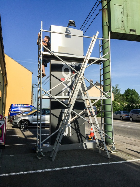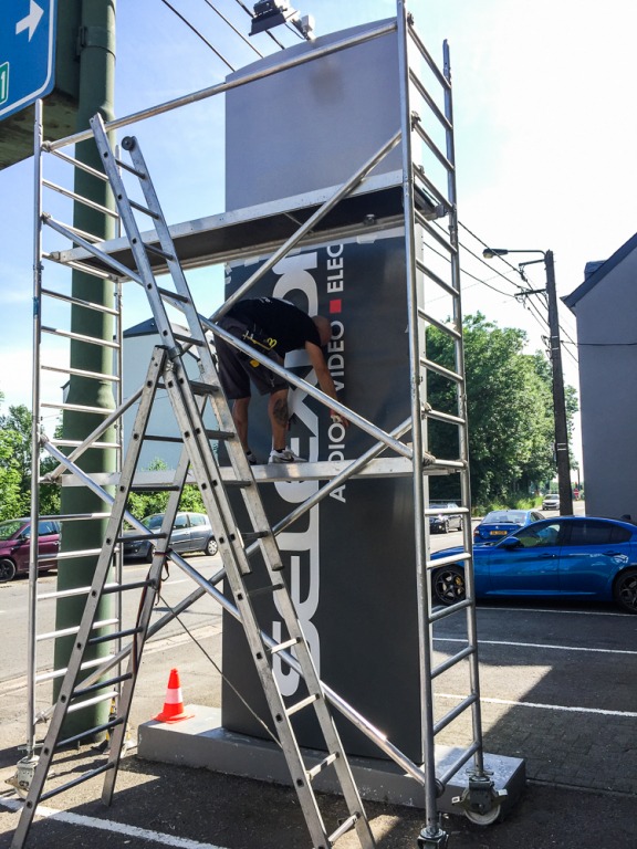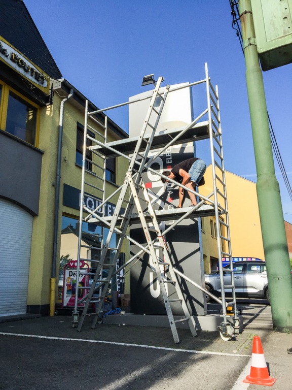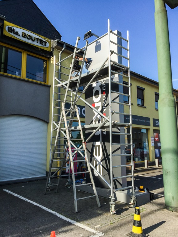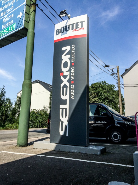 Le magasin Boutet à Arlon souhaitait donner un coup de frais à son totem publicitaire, qui lui permet d’être facilement repéré par les usagers de la route.