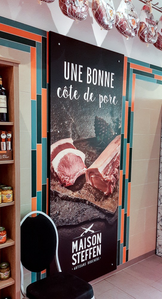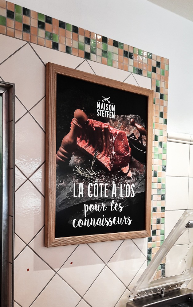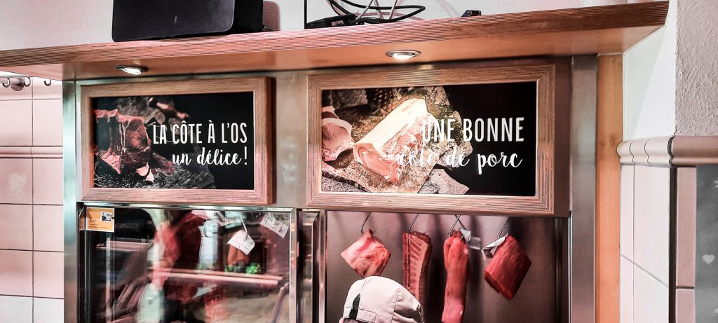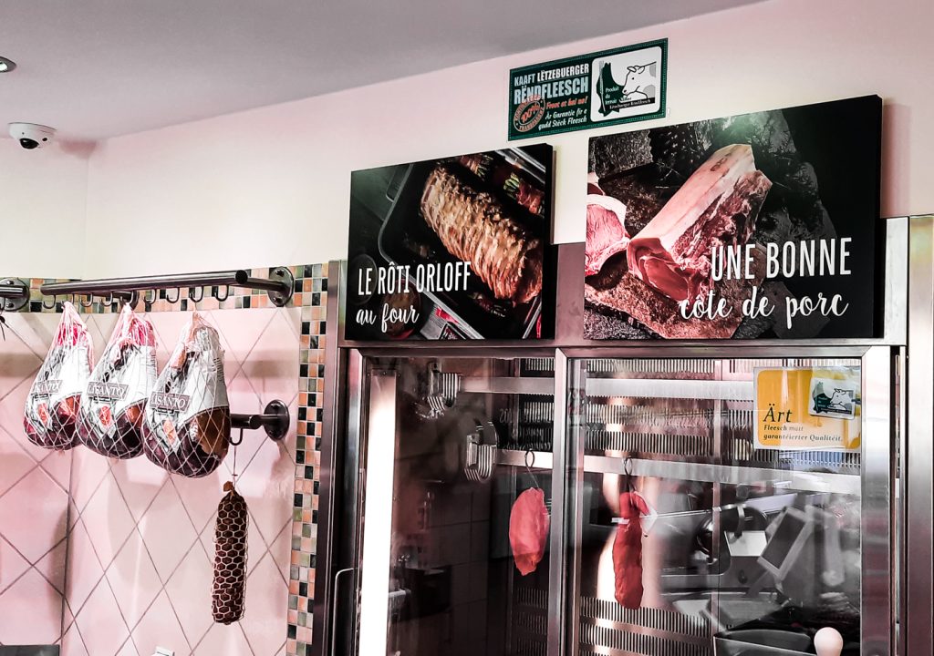 Implantées aux 4 coins du Grand-Duché de Luxembourg, notre atelier s’est rendu dans les 5 boucheries de notre client pour la pose de différents cadres et supports avec lettrage réalisé en amont dans notre atelier.