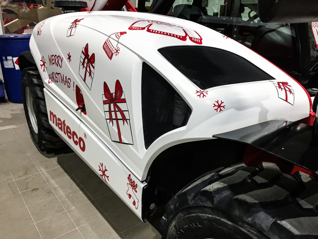 La grande société Mateco Luxembourg nous a confié un chouette projet : le covering partiel d’un manitou … avec des décorations de Noël en vinyle.